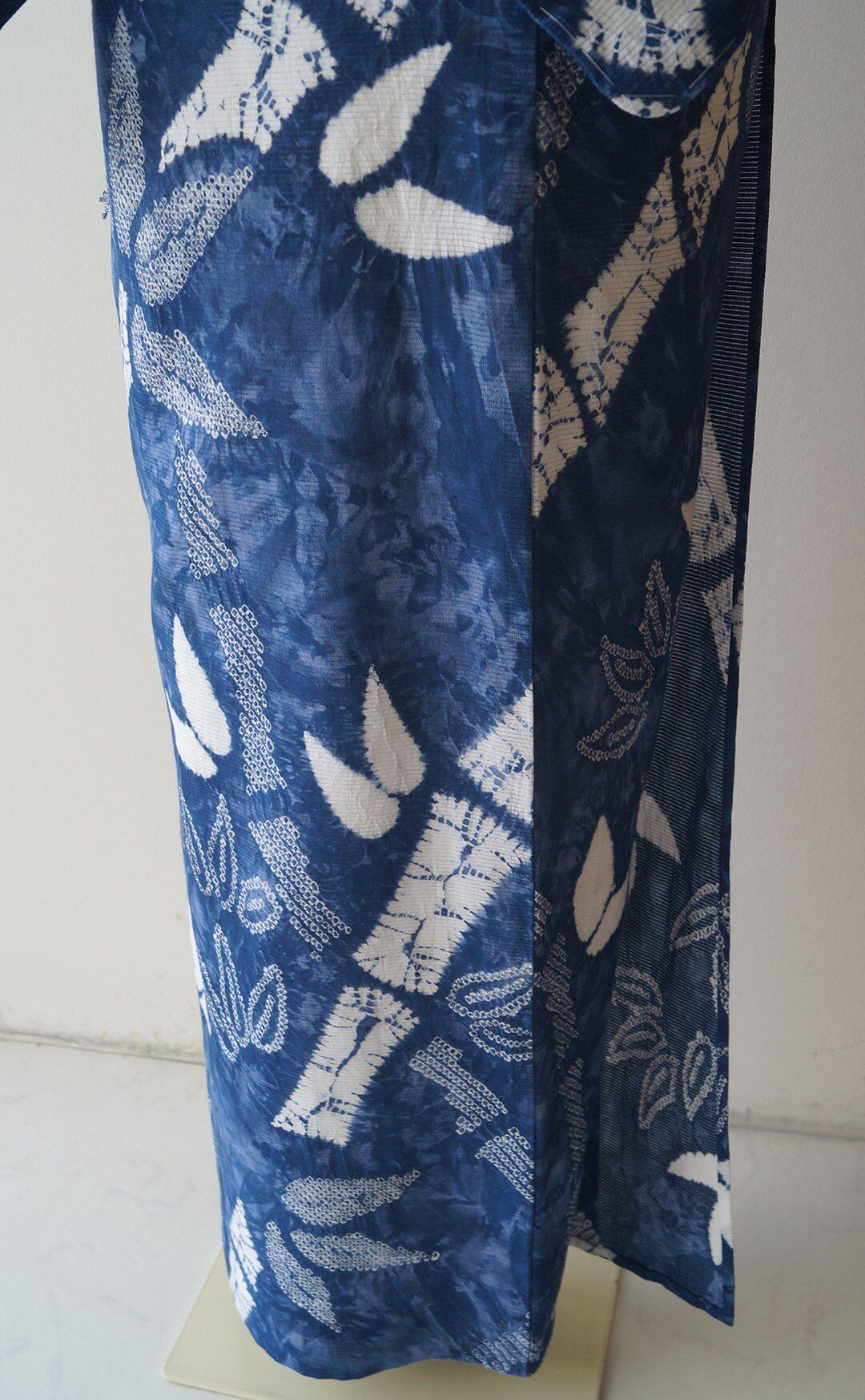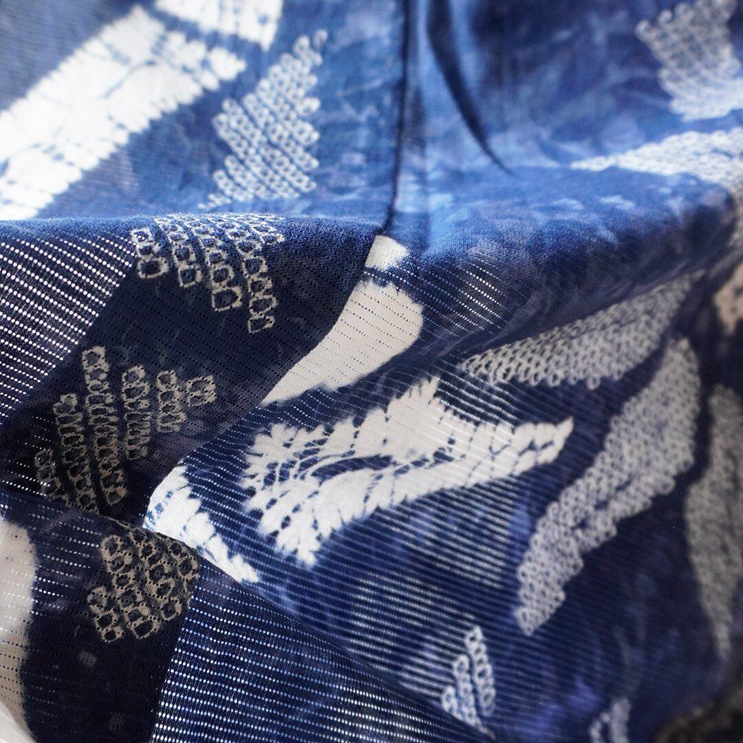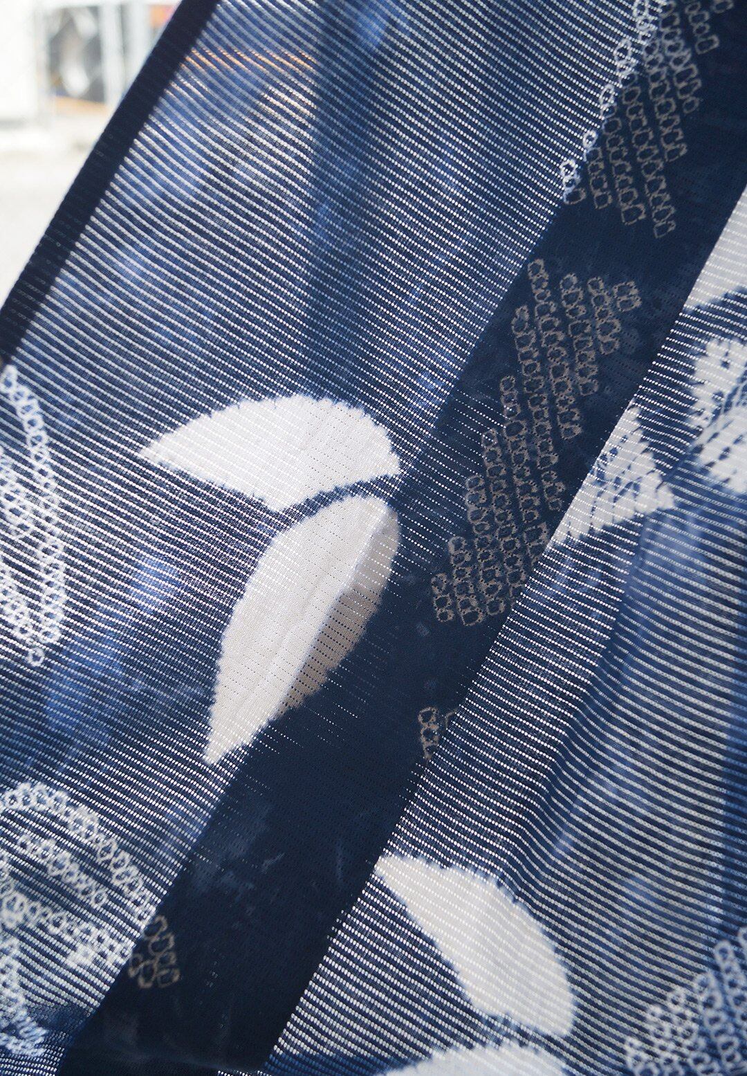 深い青の濃淡の染め、細かい綿絽の変わり生地、