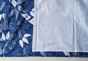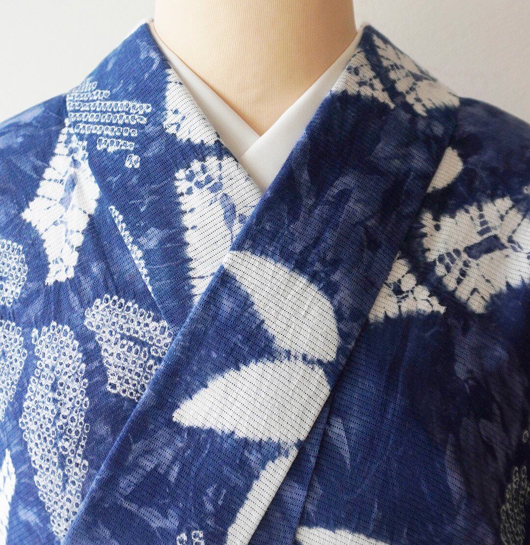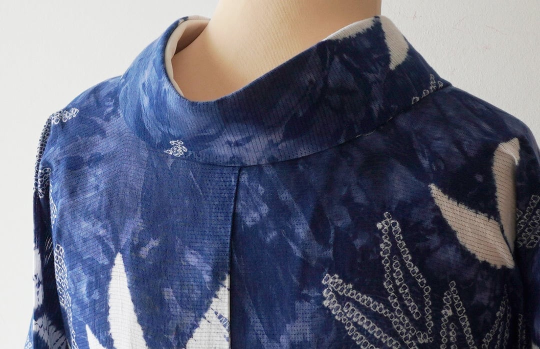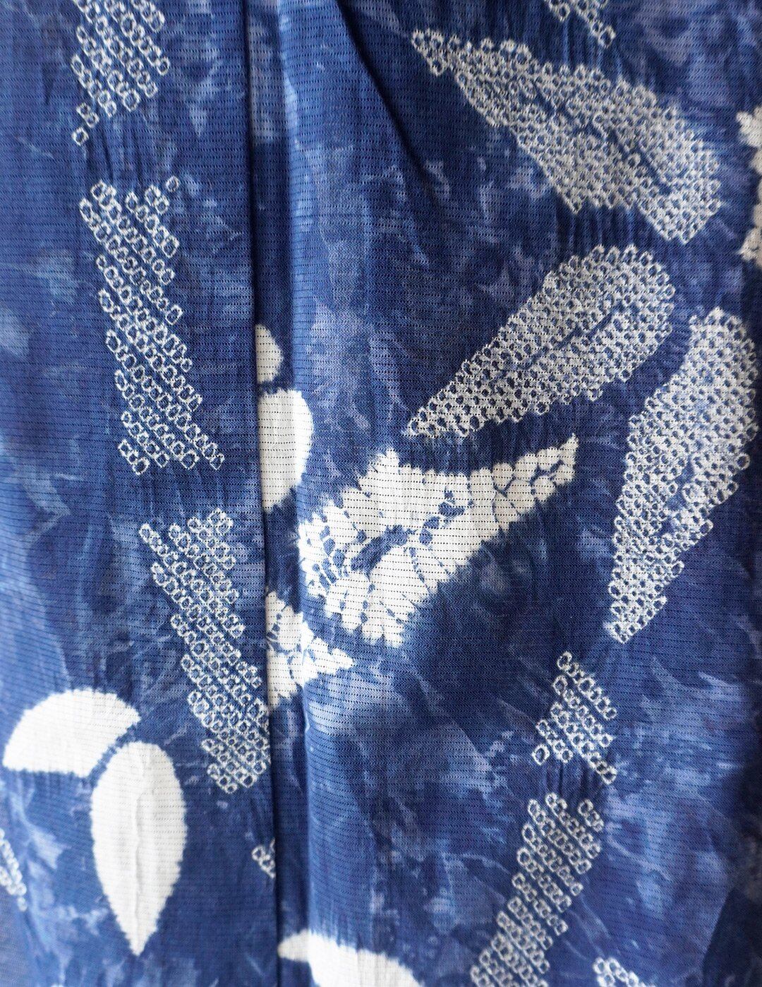 深い青の濃淡の染め、細かい綿絽の変わり生地、