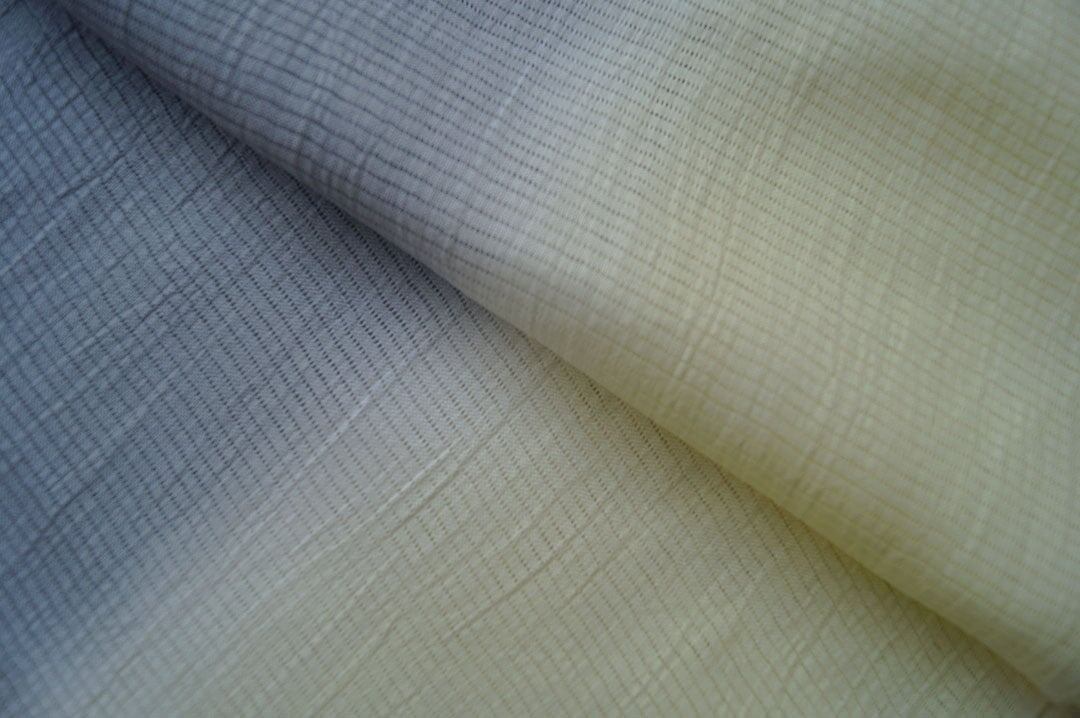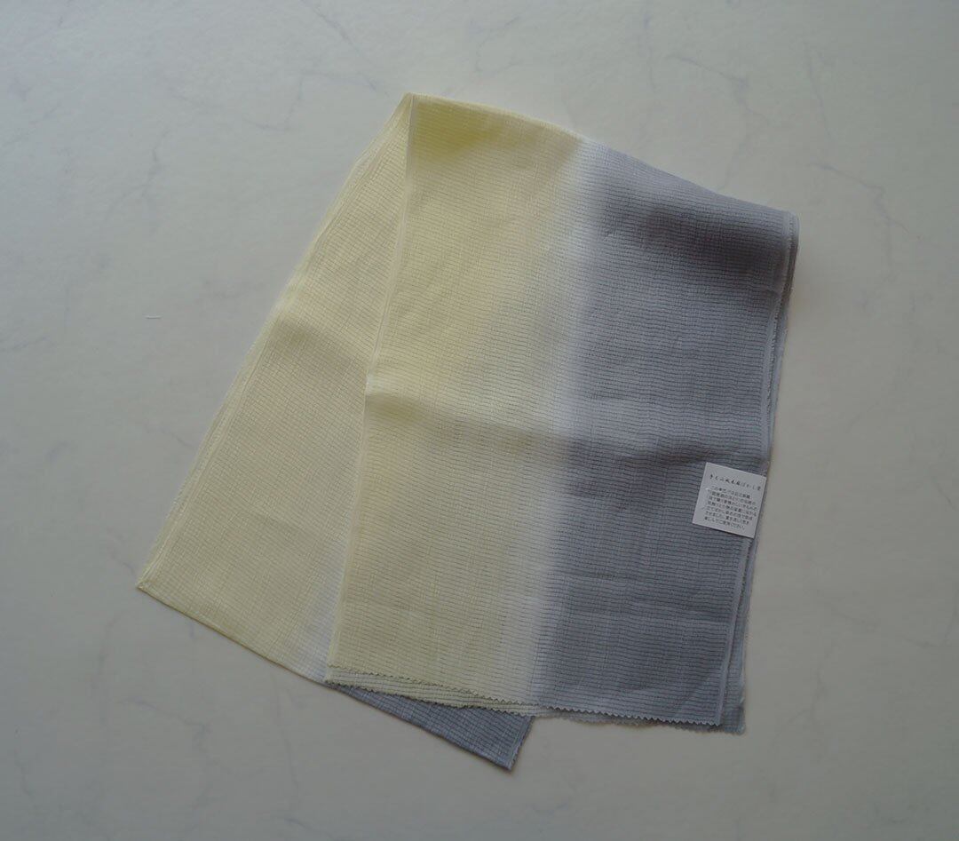 【帯揚げ】女郎花✕源氏鼠色 無地 手もみ風 二色暈かし 絽本麻 帯揚げ No.250314-54