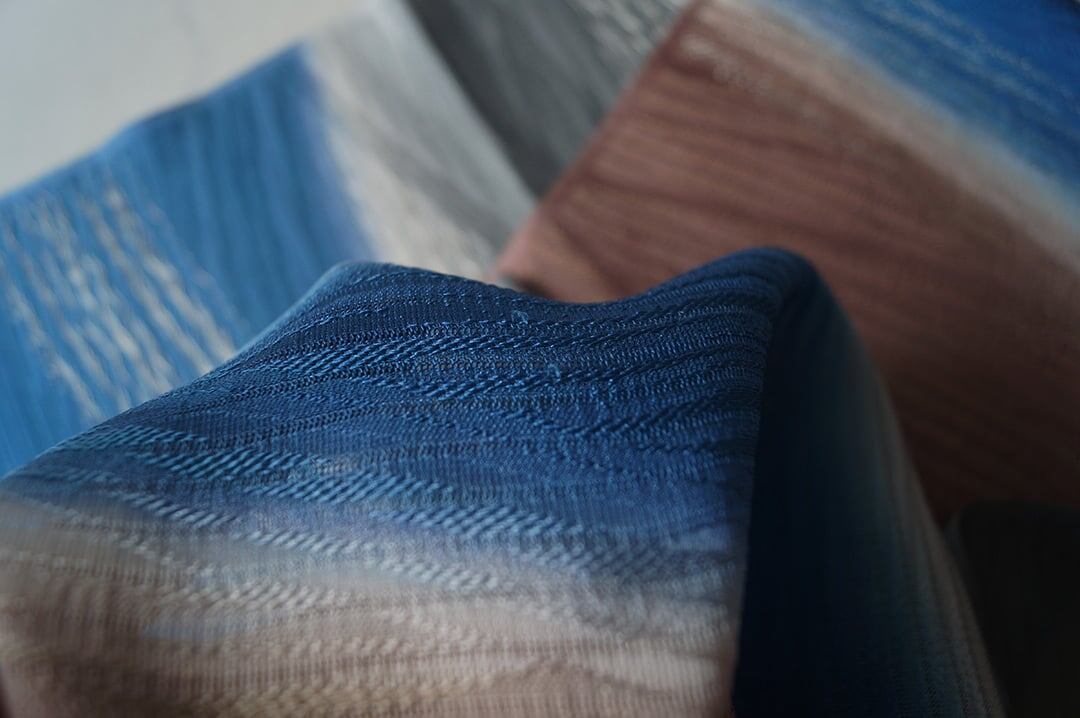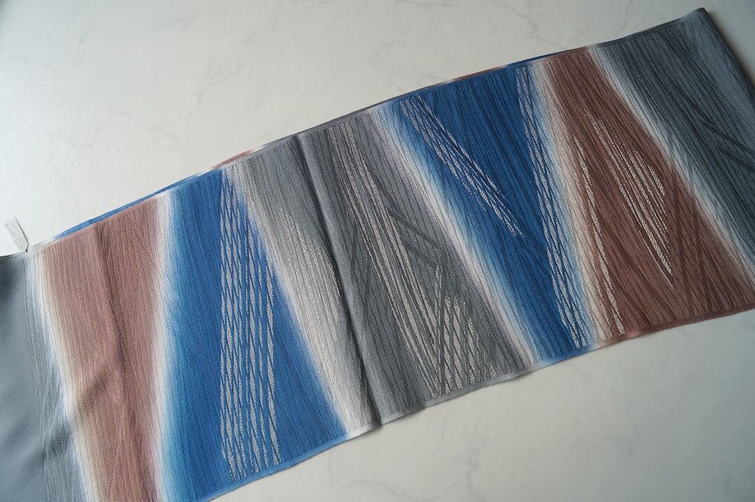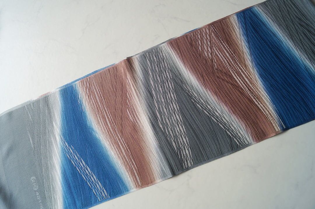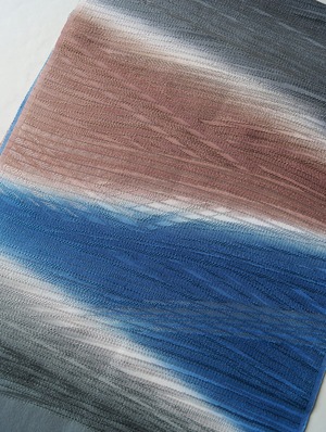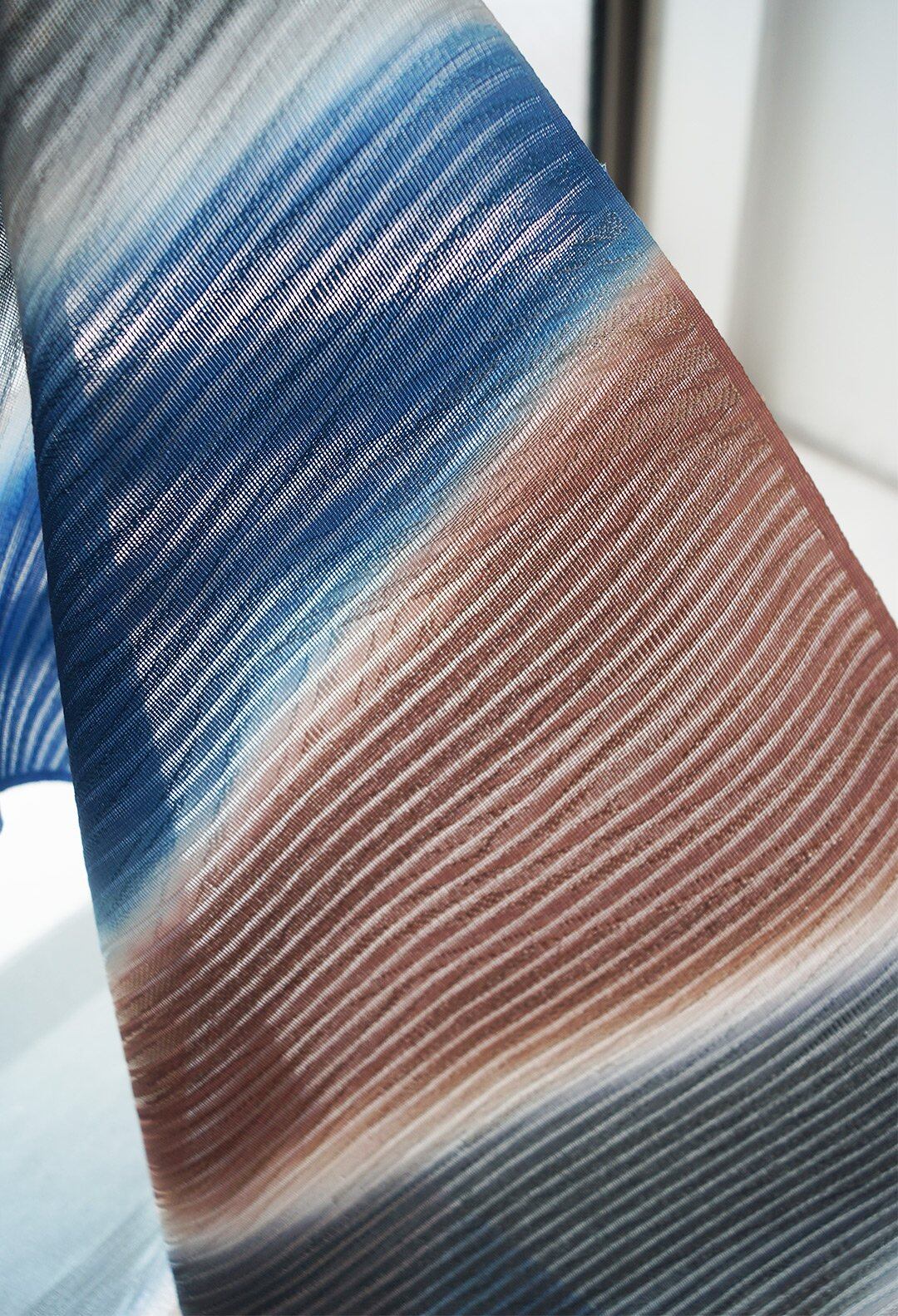 【衿秀・帯揚げ】鉛色×青藍色×赭色 斜線暈かし 絽帯揚げ 250403②
