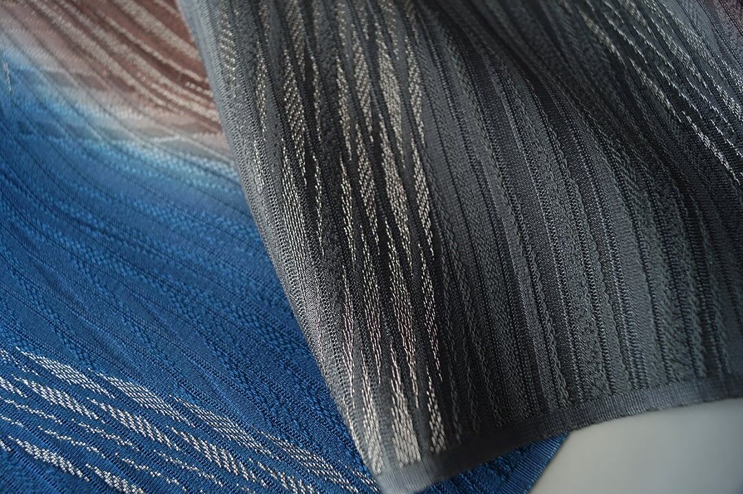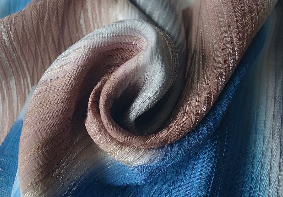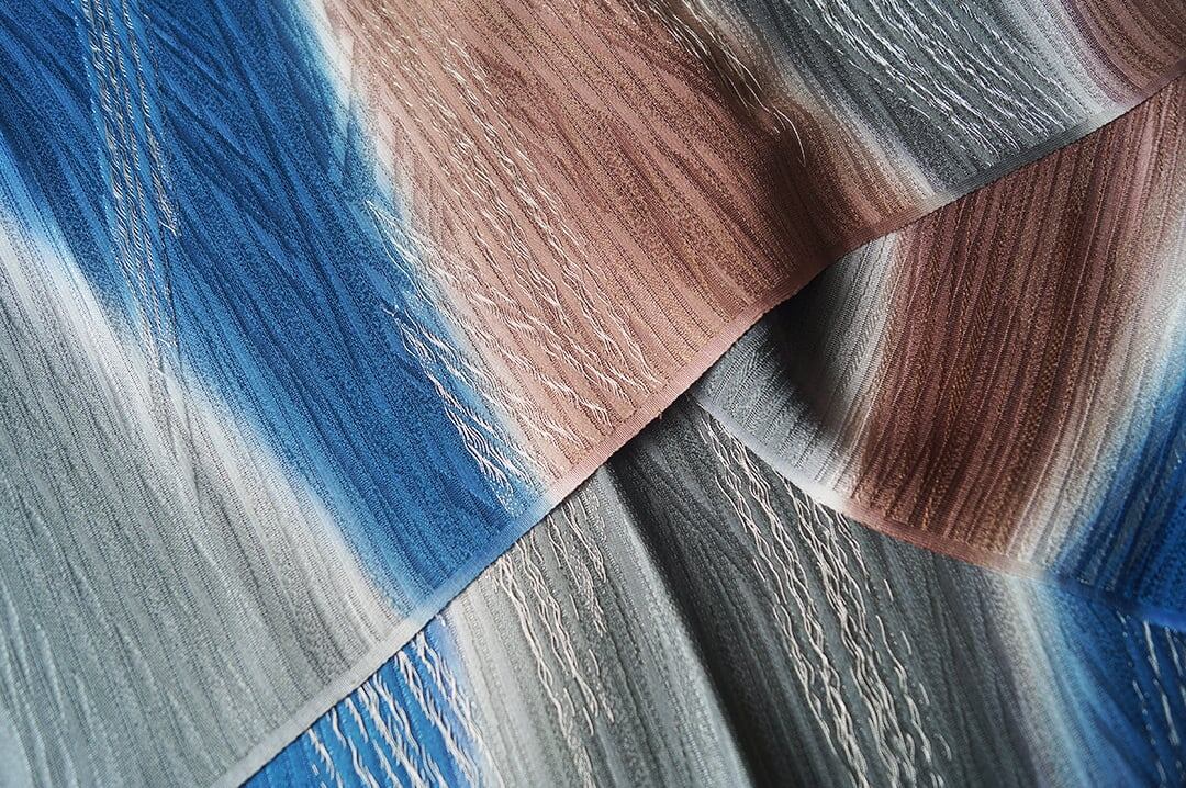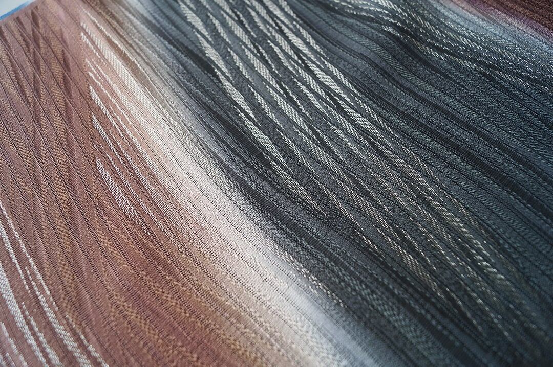 【衿秀・帯揚げ】鉛色×青藍色×赭色 斜線暈かし 絽帯揚げ 250403②