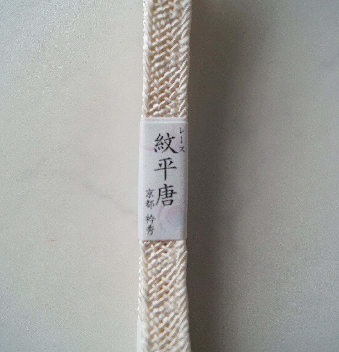 【帯締め】衿秀 レース紋平唐 生成り色 夏帯締め 撚り房 250314⑩