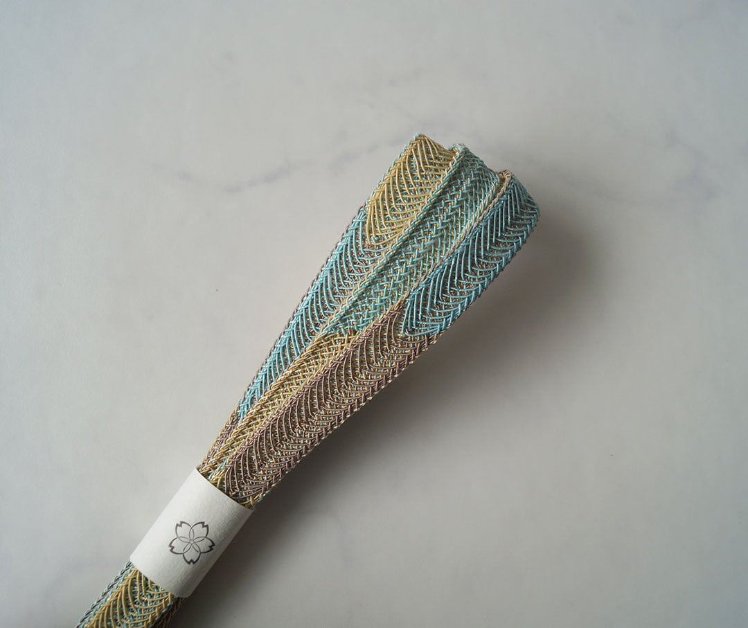 【和小物さくら・帯締め】淡黄色×水色×薄茶色 矢羽根段切替レース 夏用帯締め No.250319⑰