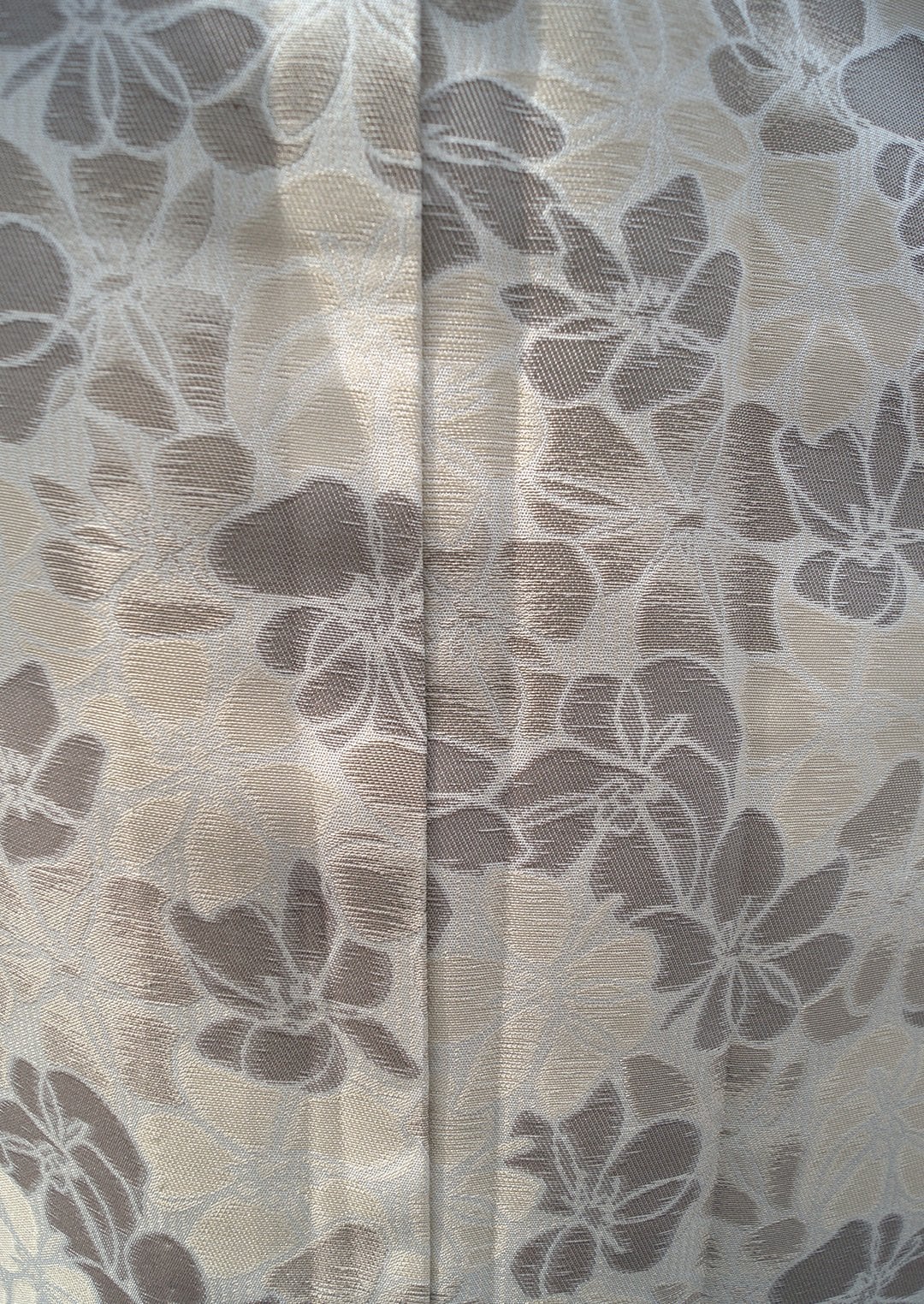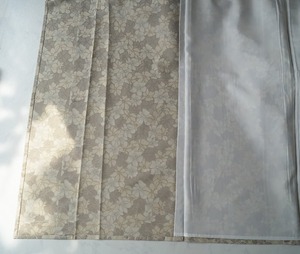 【単衣】サンドベージュ系 花文 単衣お召し ゆとりサイズ