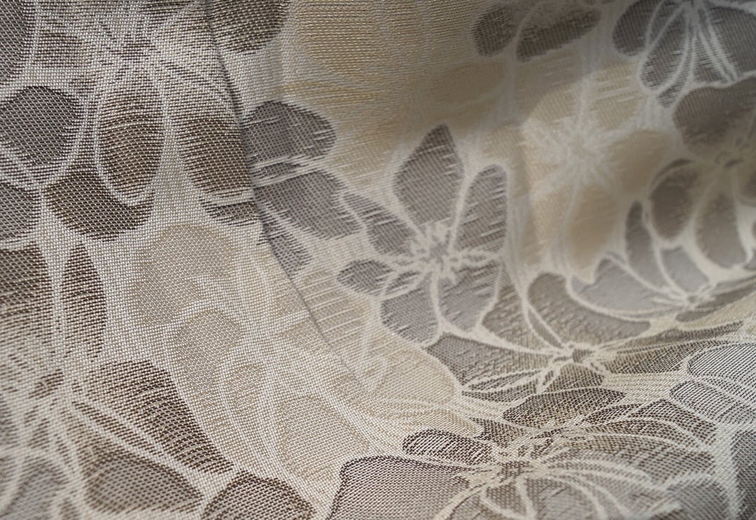 花文様が織り出された単衣のお召しです。
