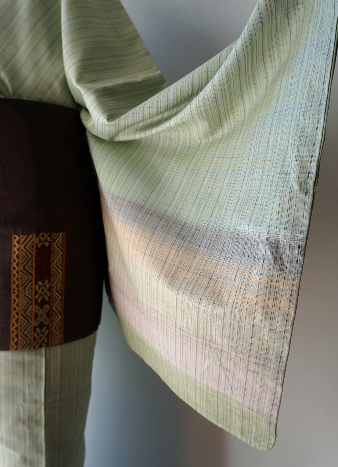 濃いお色味の糸の細い縞文がさりげなく映え、