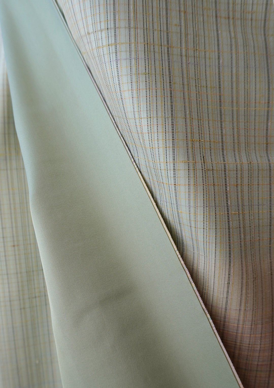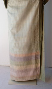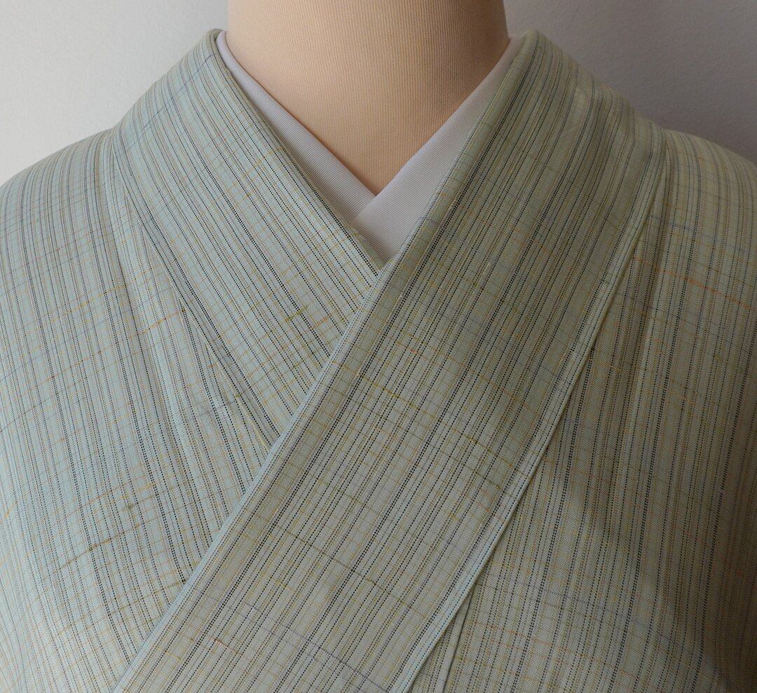 【袷】ゆとりサイズ 薄青竹色地 附け下げ紬