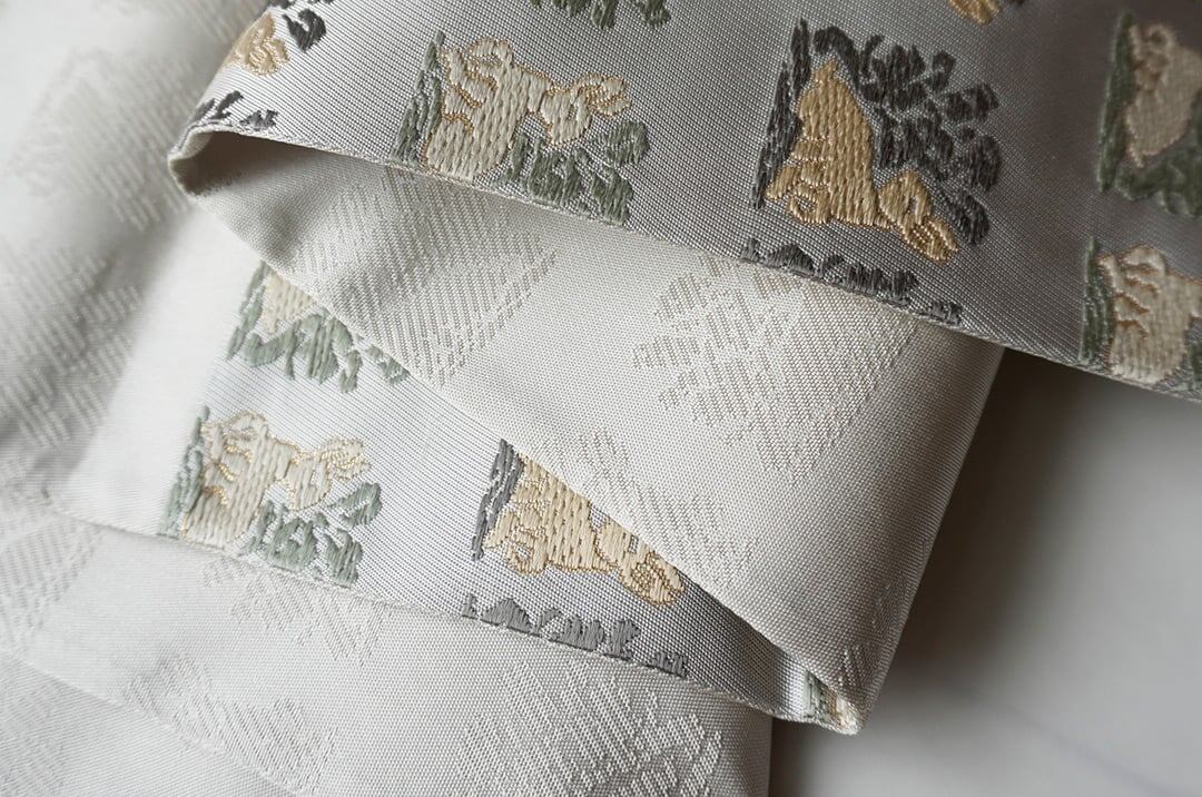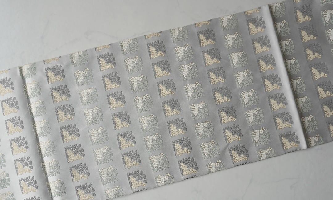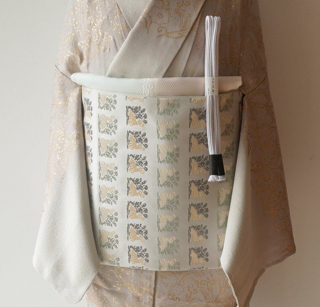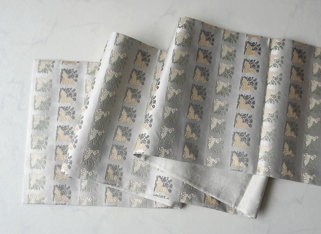 【ふくろ帯】白練地 花兎文 ふくろ帯