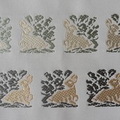 兎を縁取る金糸が