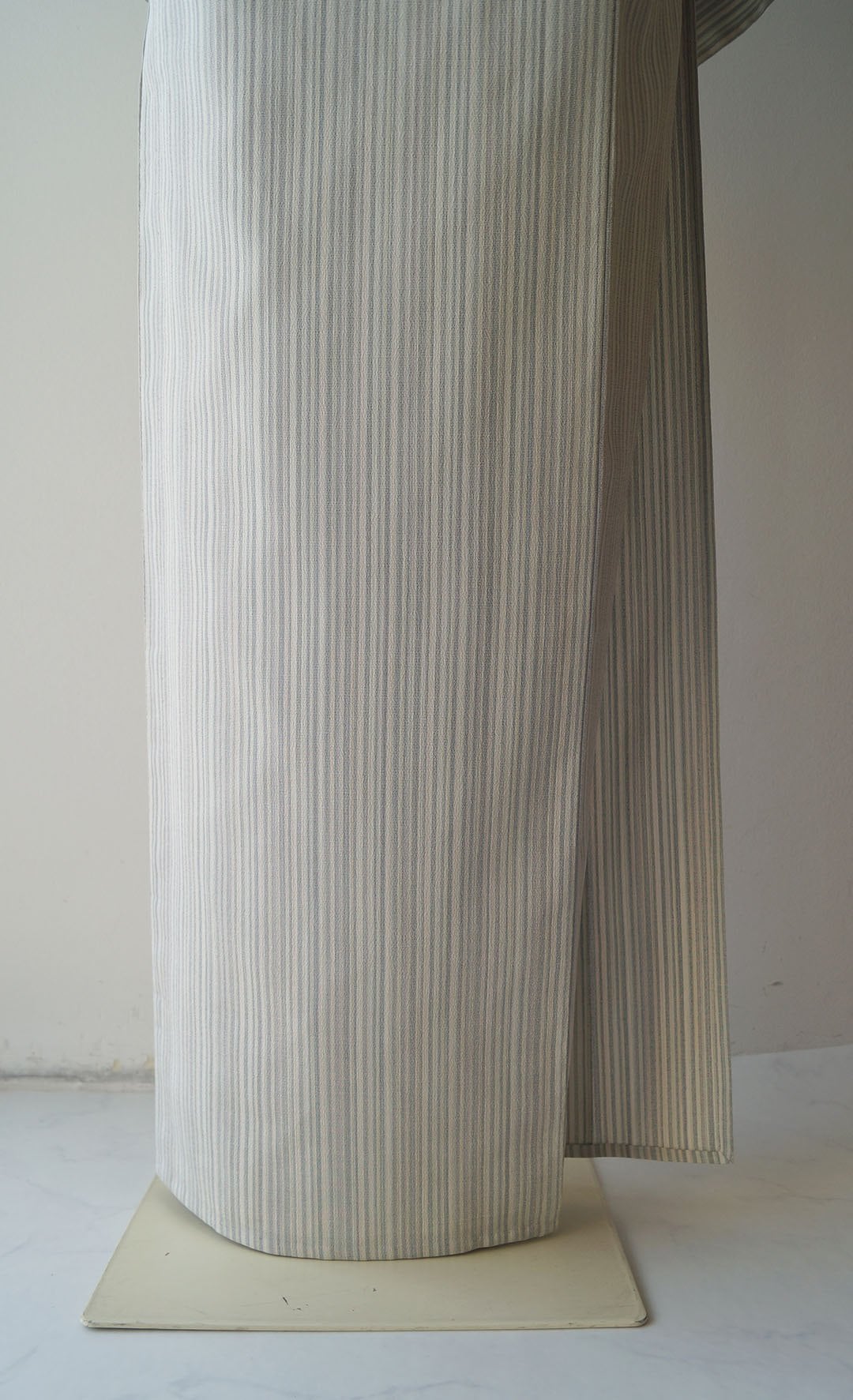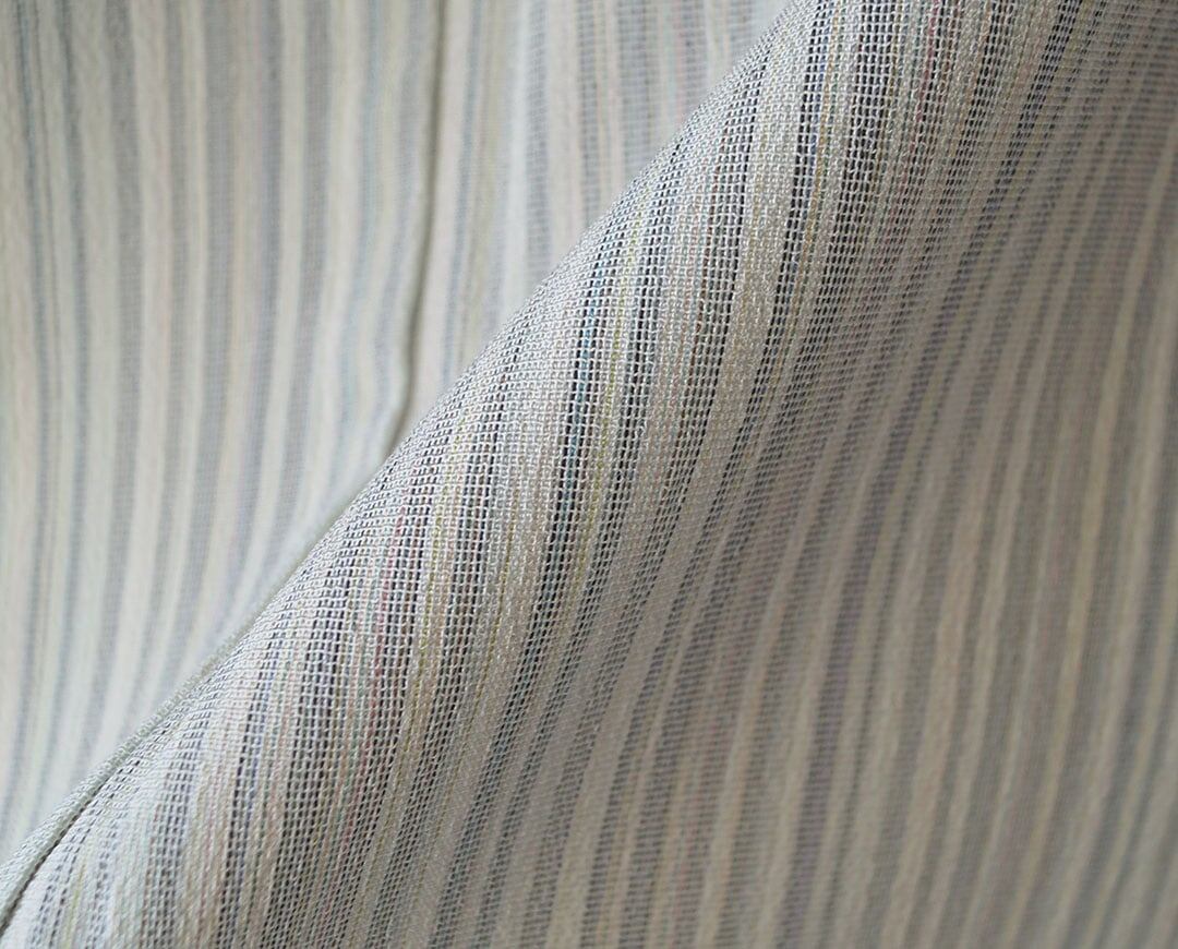 【単衣】本塩沢 生成り色地 やまだ織証紙付き 縦縞