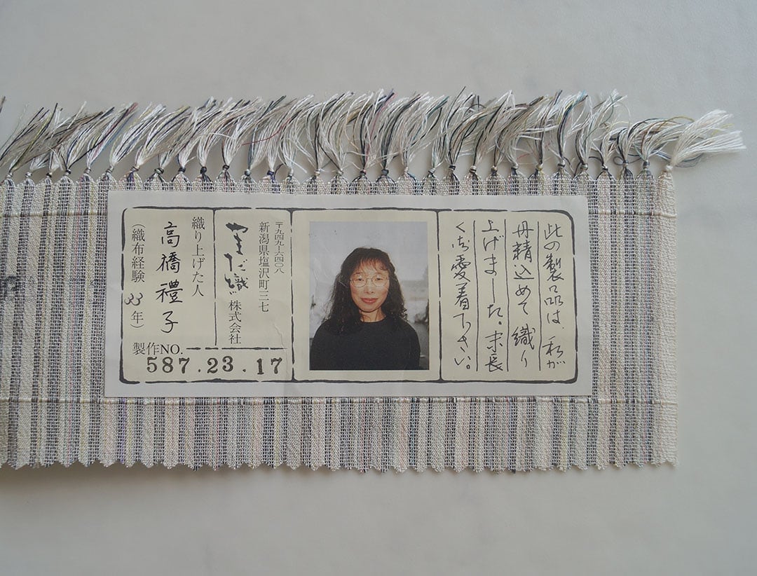 老舗やまだ織の証紙付きのお品です。
