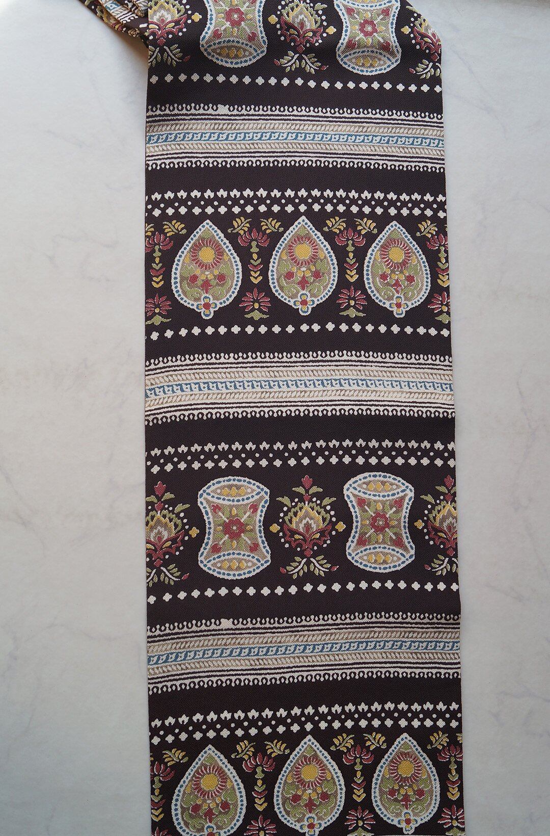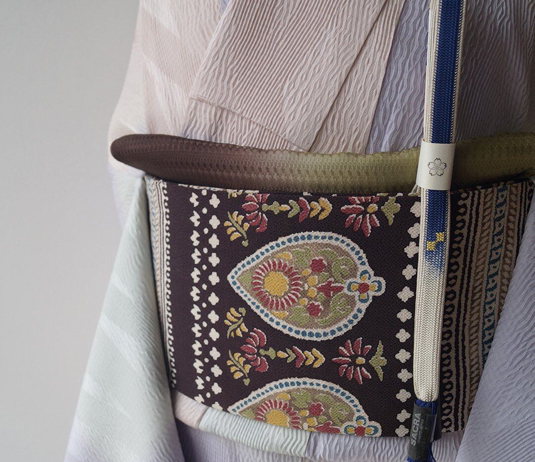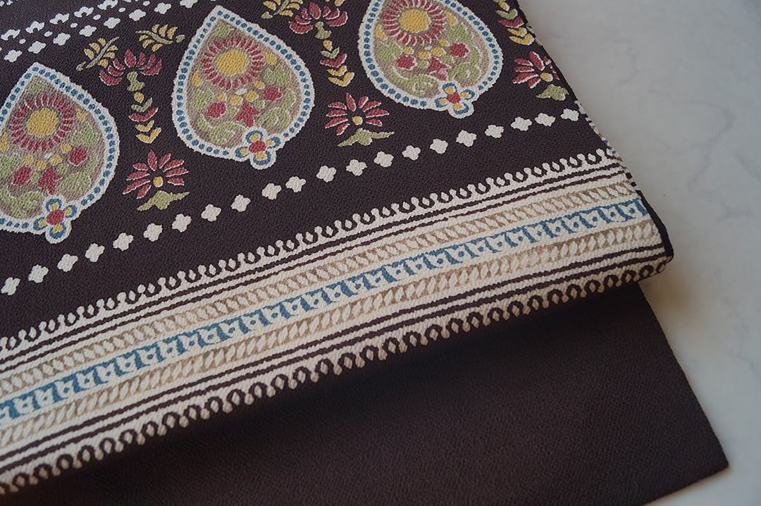 【なごや帯】濃茶地 抽象花横段文 なごや帯