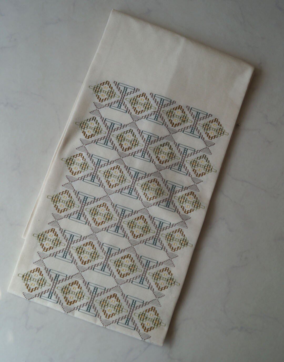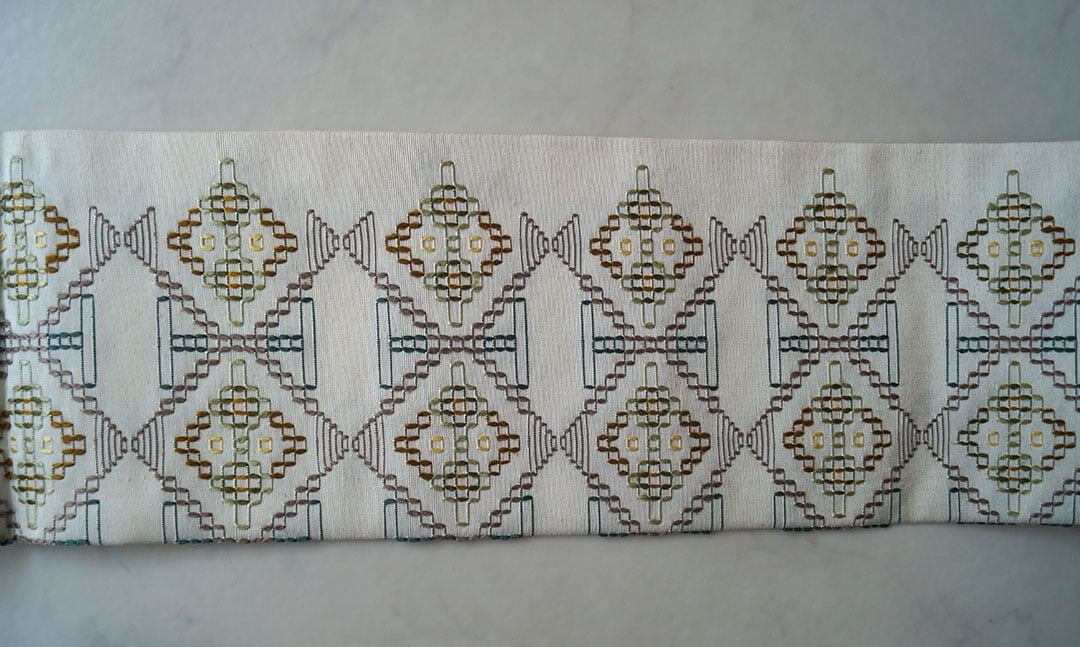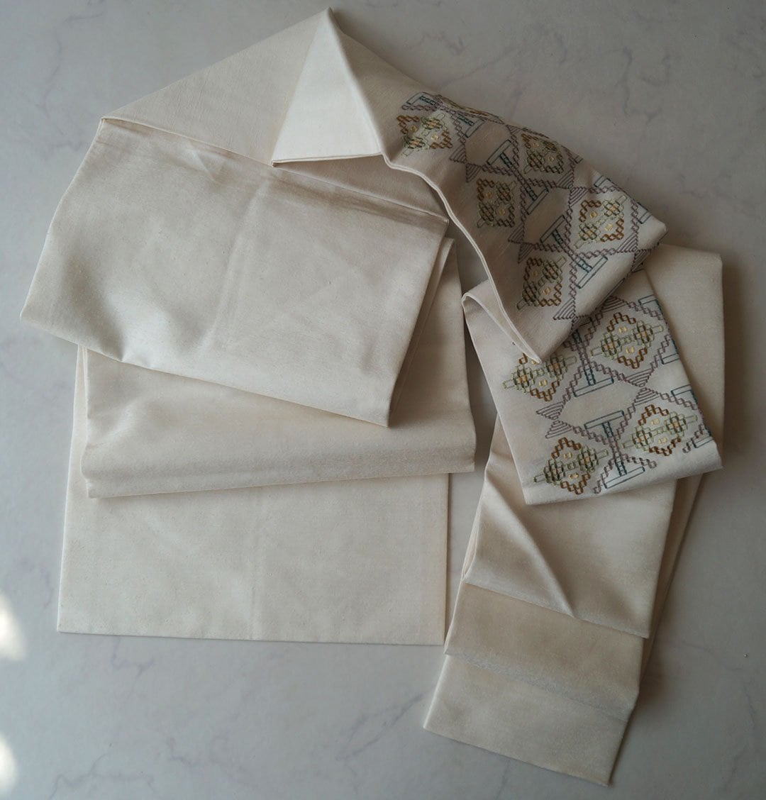 生成り系の地に、花織りの文様が