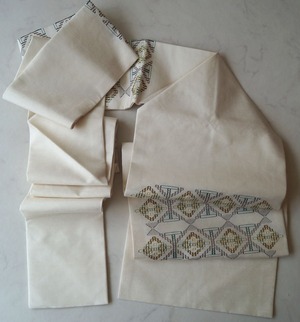 【なごや帯】練色地 琉球花織 なごや帯