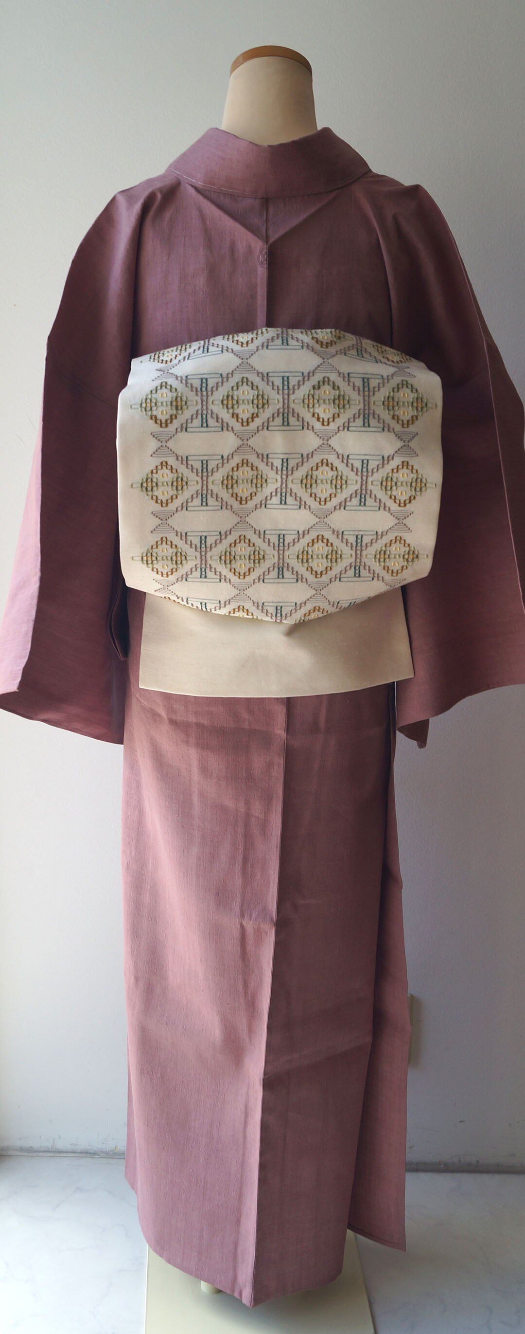 温かみのある花織りの帯です。