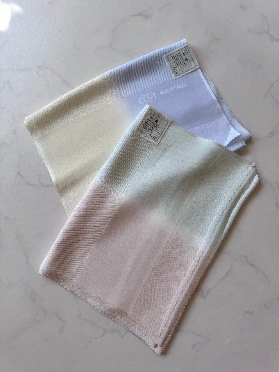 【帯揚げ】薄卵色×空色 風通 帯揚げ 250420⑱
