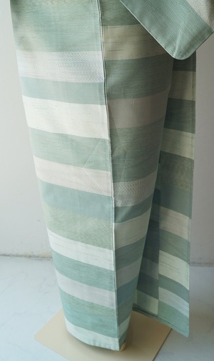 【単衣】薄青系 段違い横段文 本場大島紬 単衣