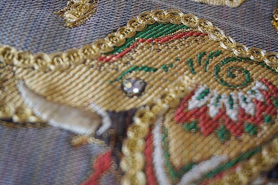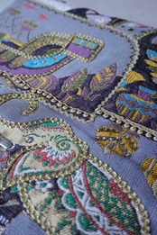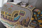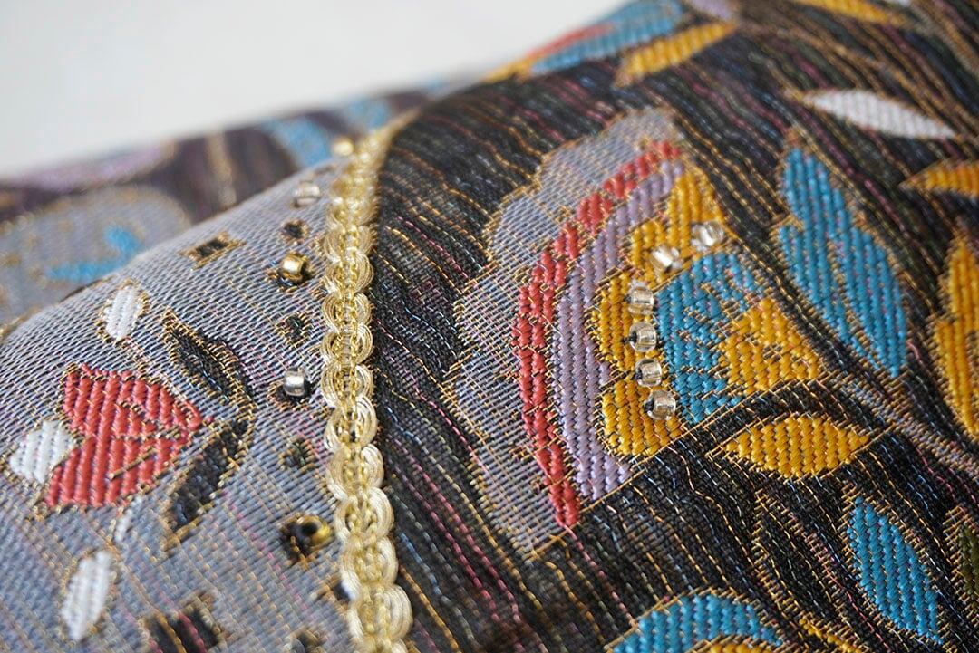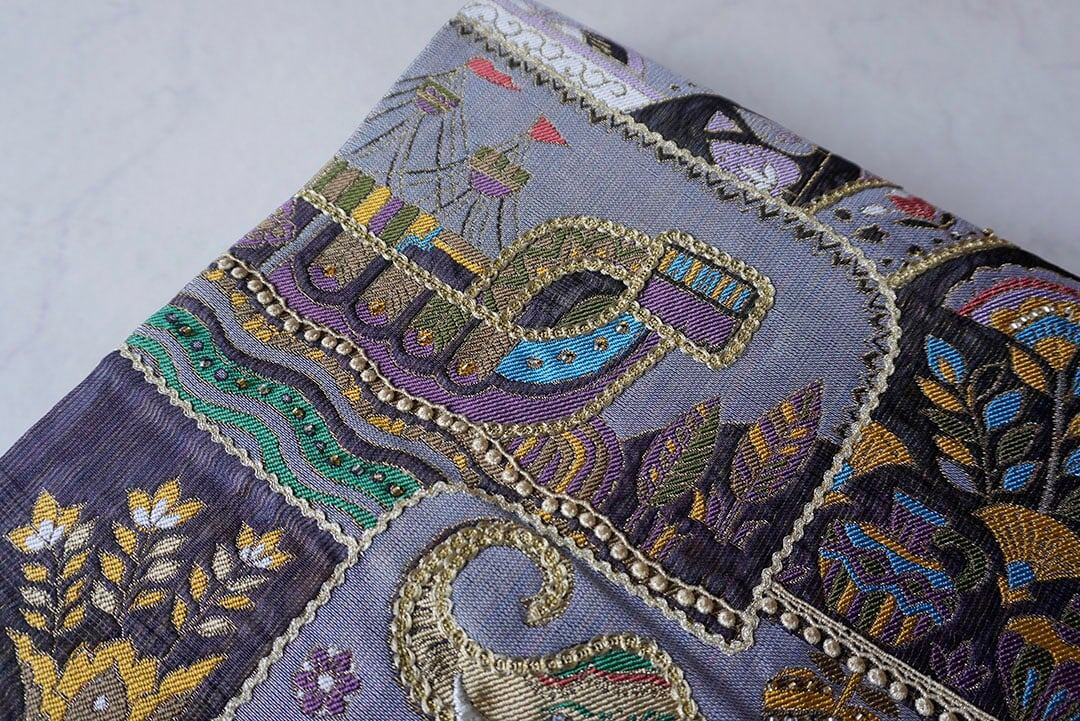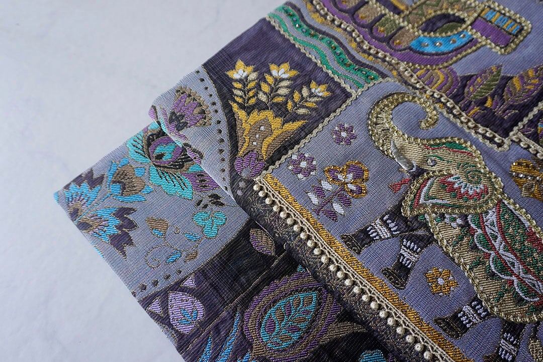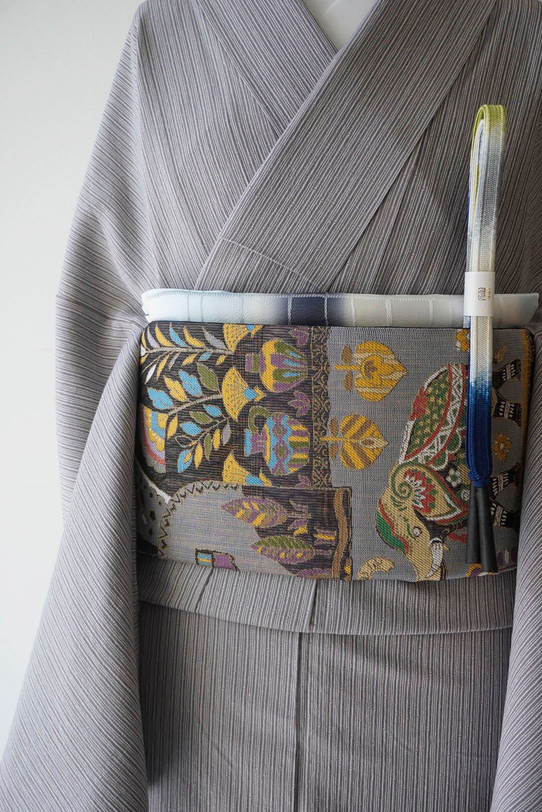 【ふくろ帯】象に船、草花のダークトーン洒落ふくろ帯