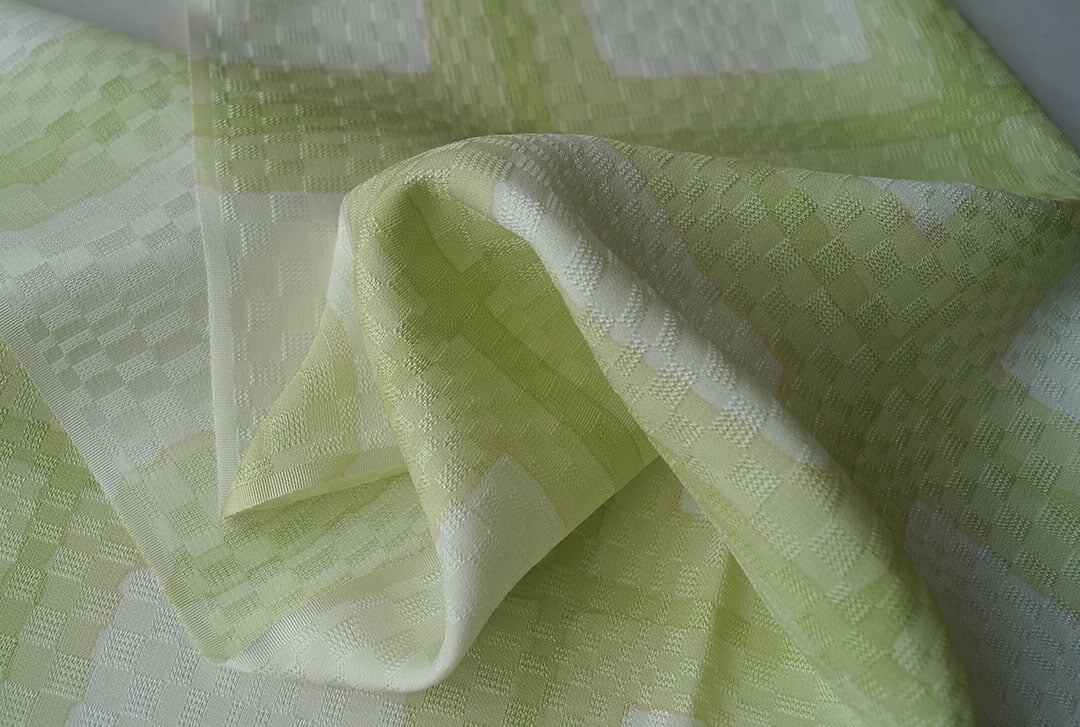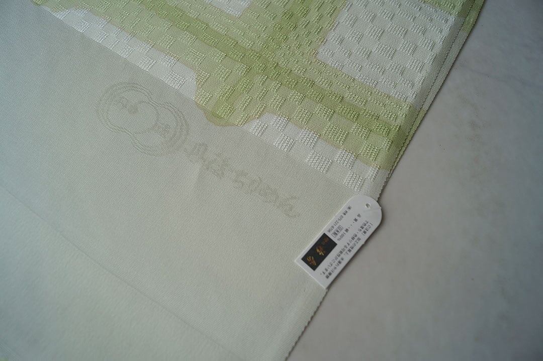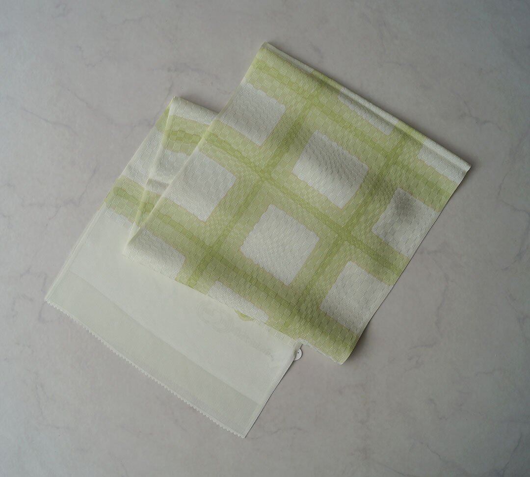オフホワイト地に若苗色と若苗色の黄色系の濃淡で