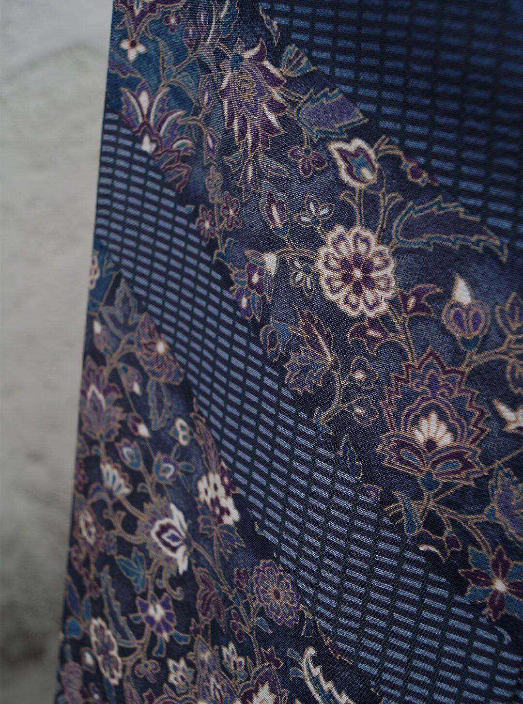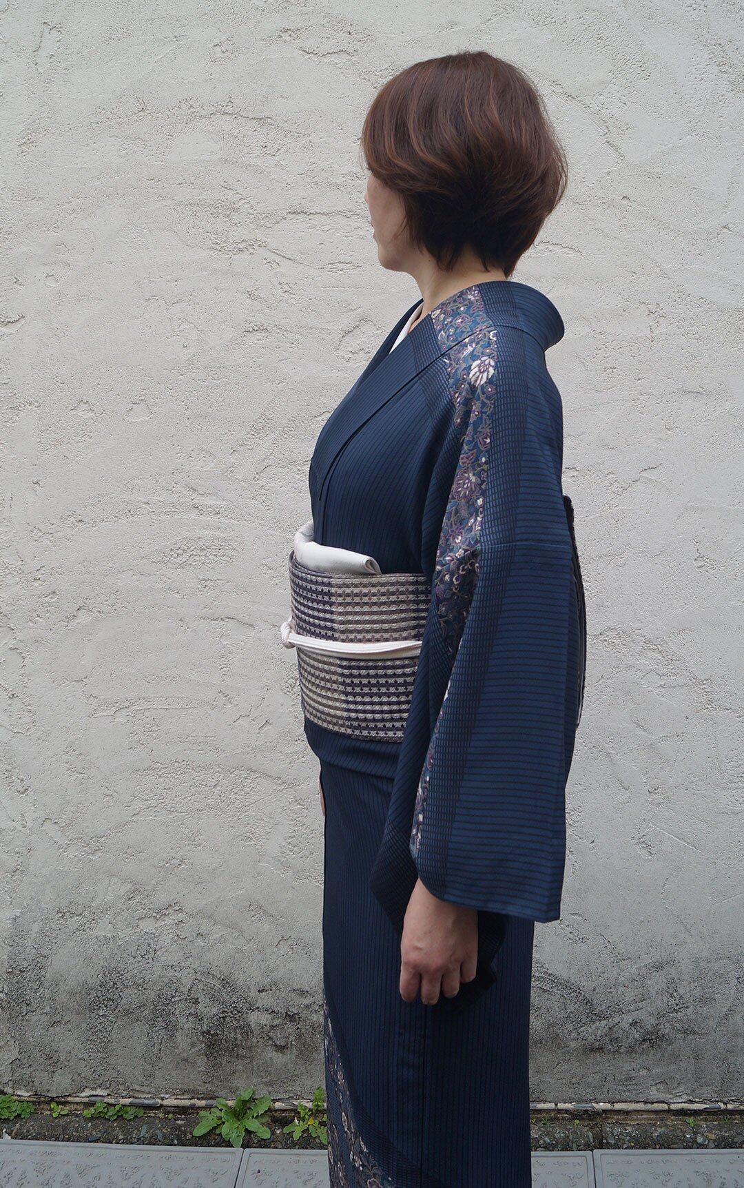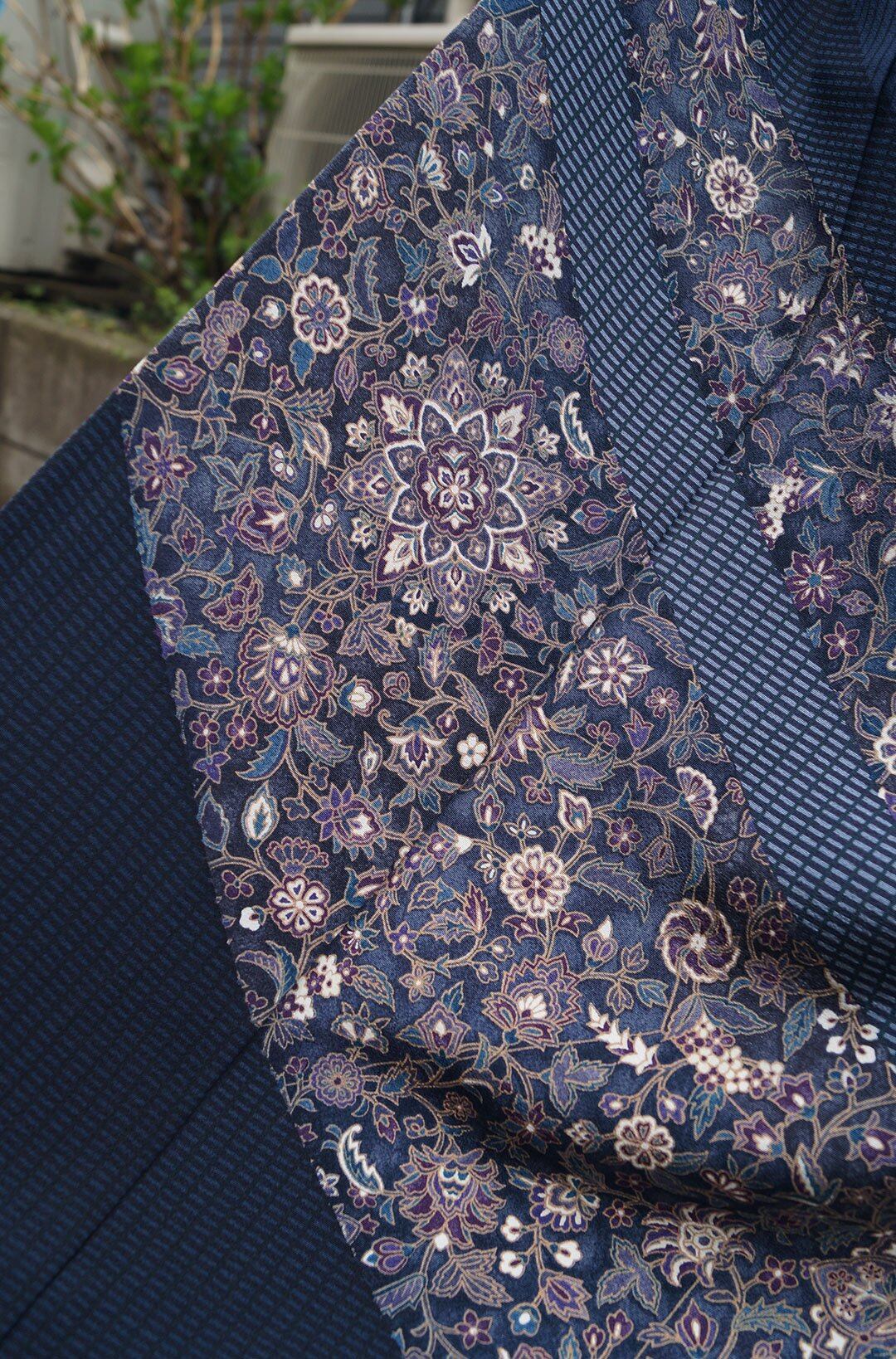 【単衣】幸廣作 ミッドナイトブルー系 斜め更紗縞 単衣訪問着
