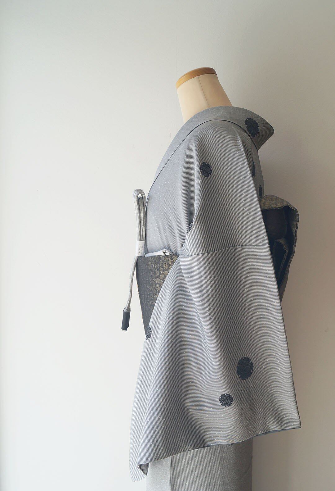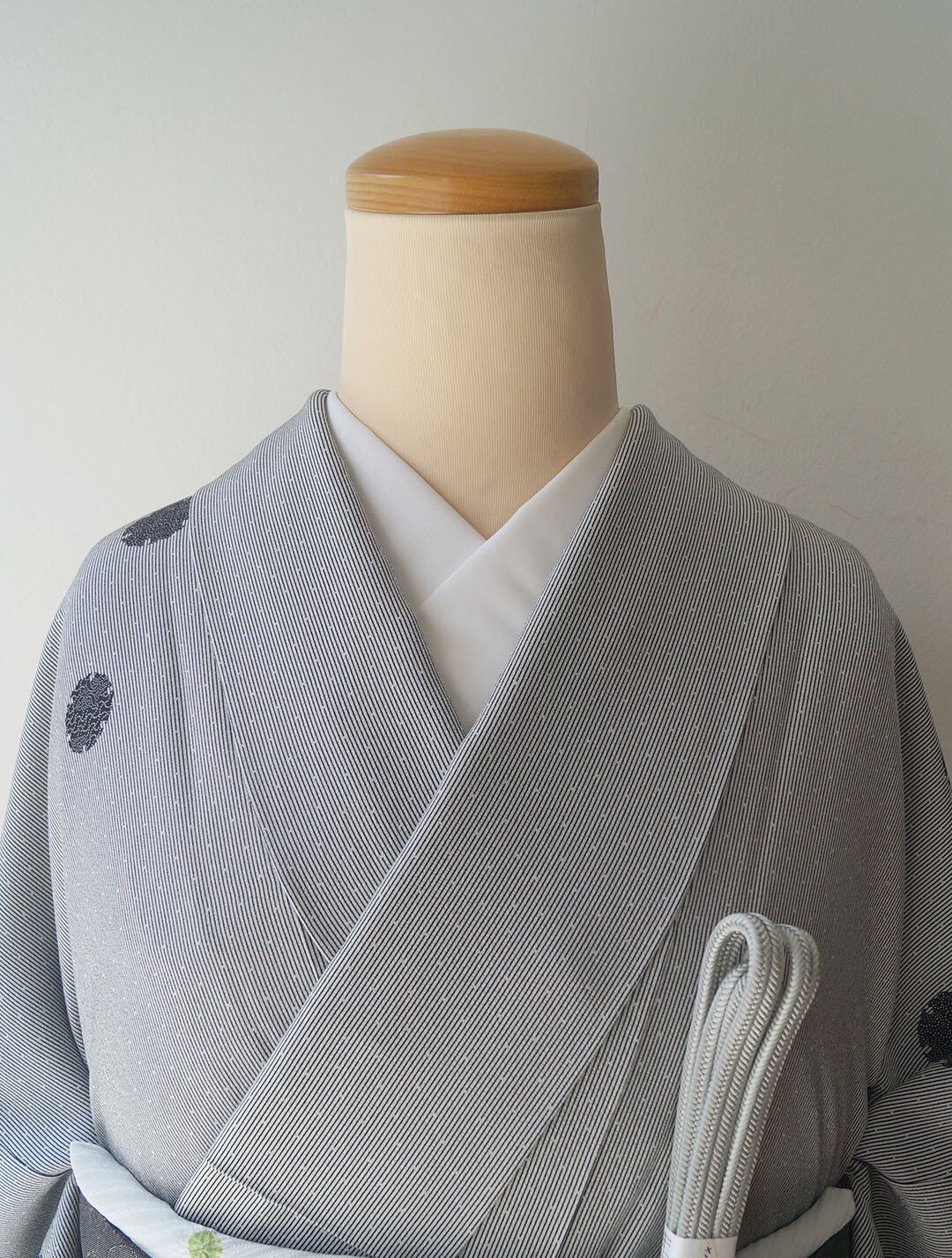 【袷】白練色地 木賊縞に雪輪文 伊勢型小紋