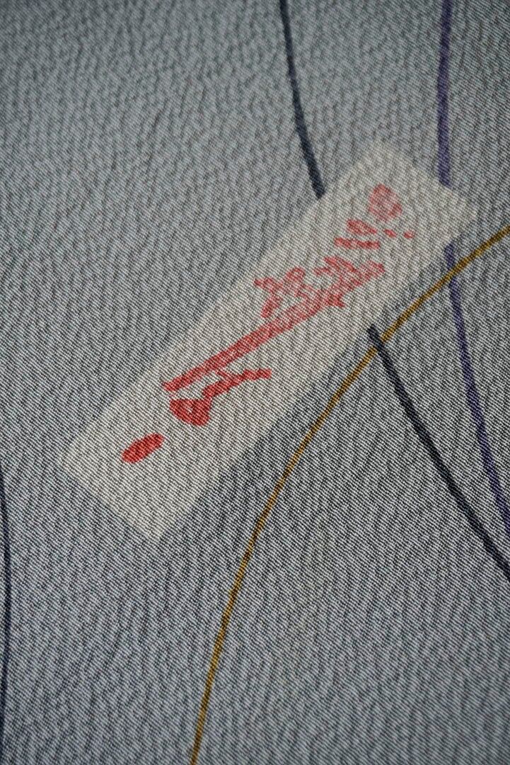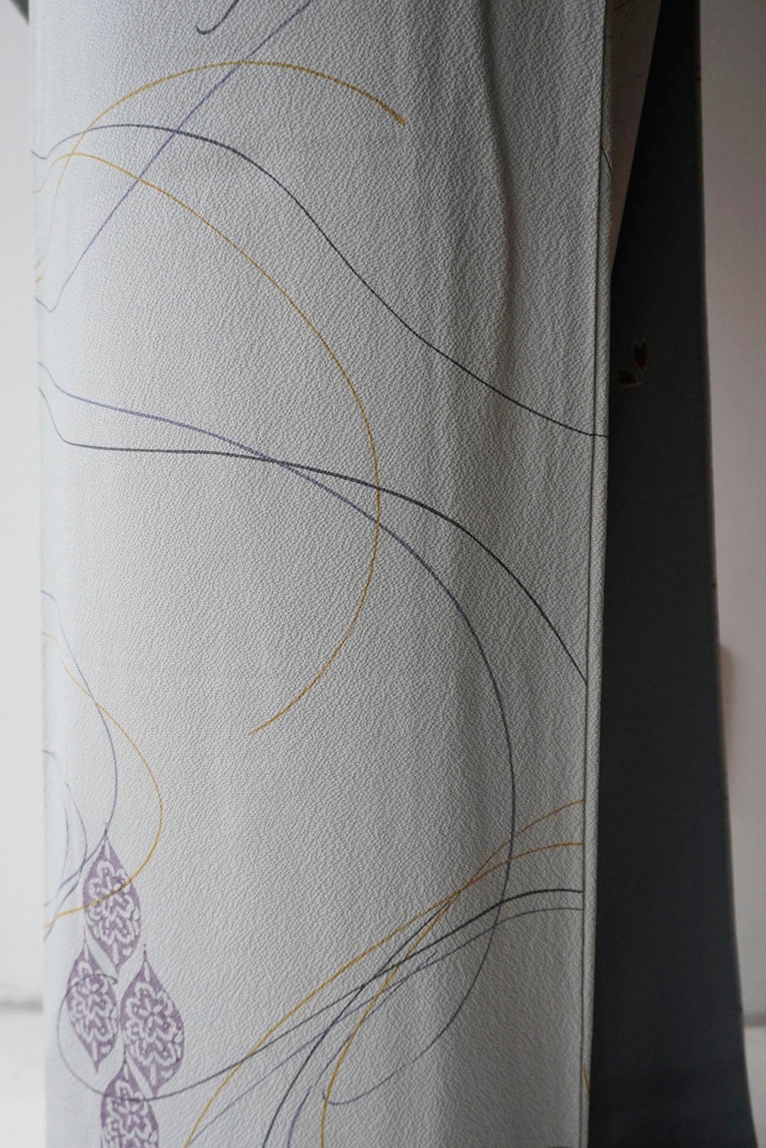 【袷】ジュサブロー作 流線文に桜のモチーフ 縮緬小紋