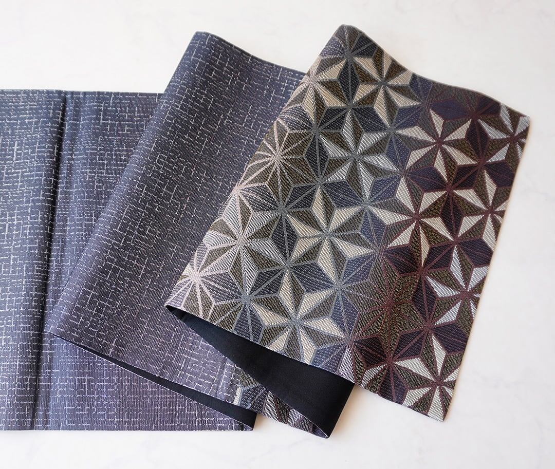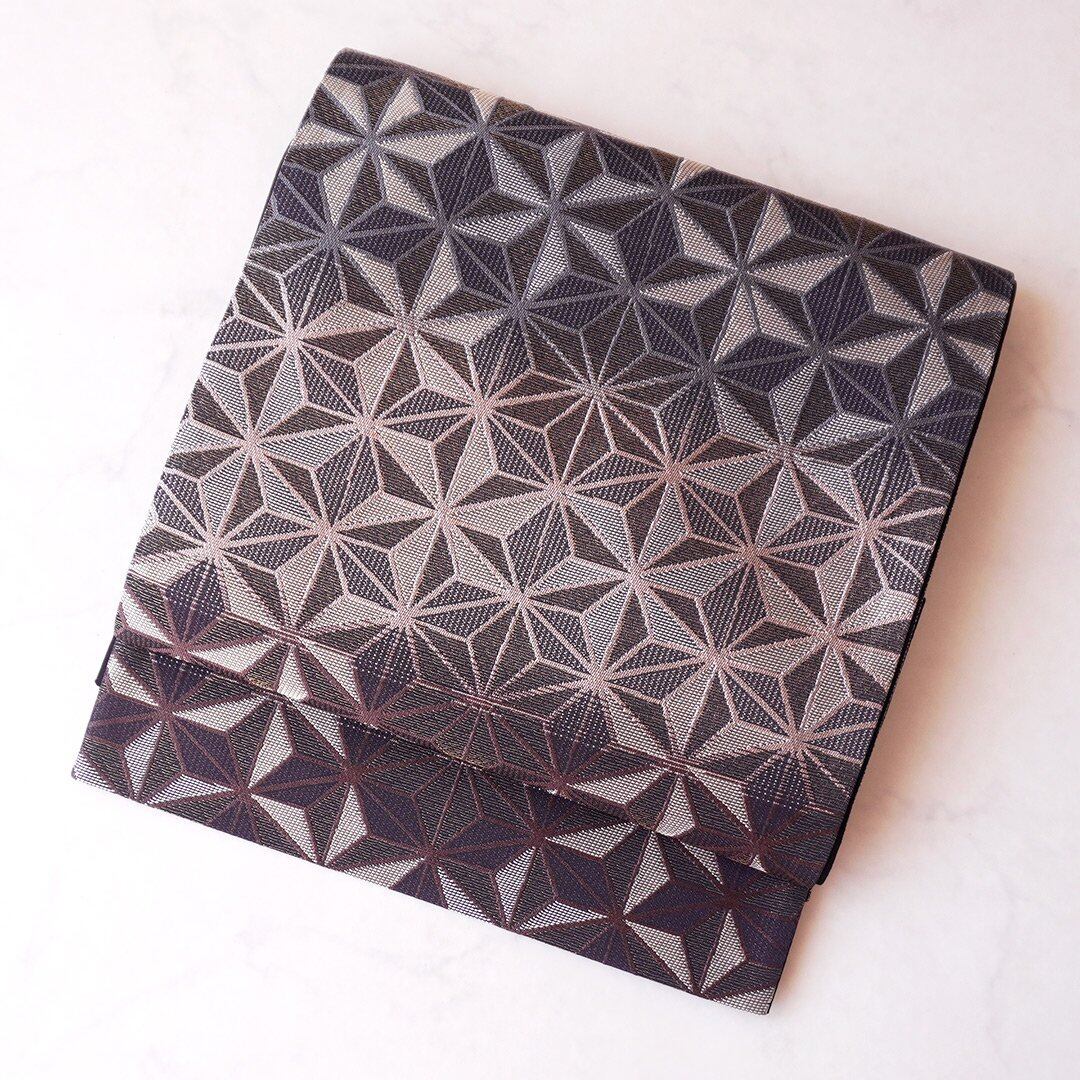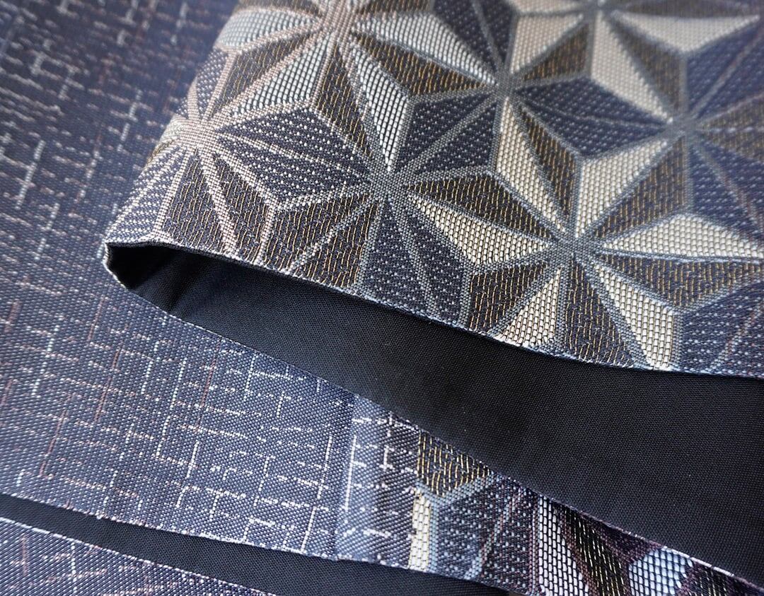 【ふくろ帯】黒×濃紺地 麻の葉文 洒落ふくろ帯