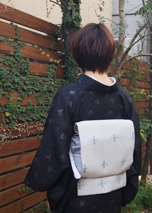 格子に結晶柄のなごや帯です。