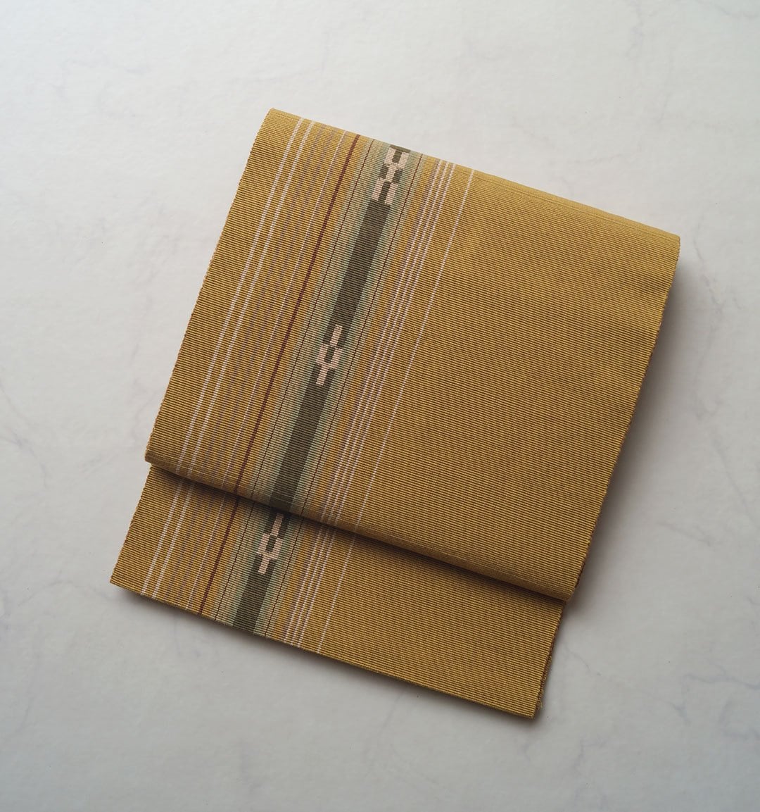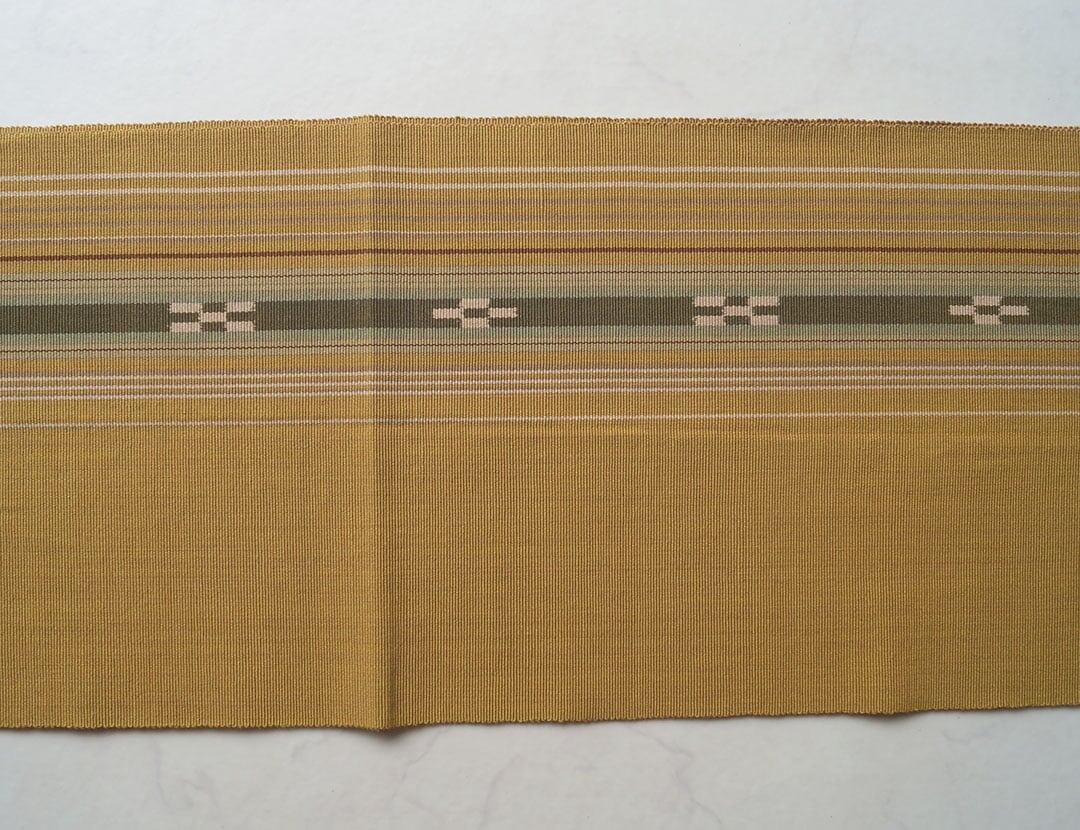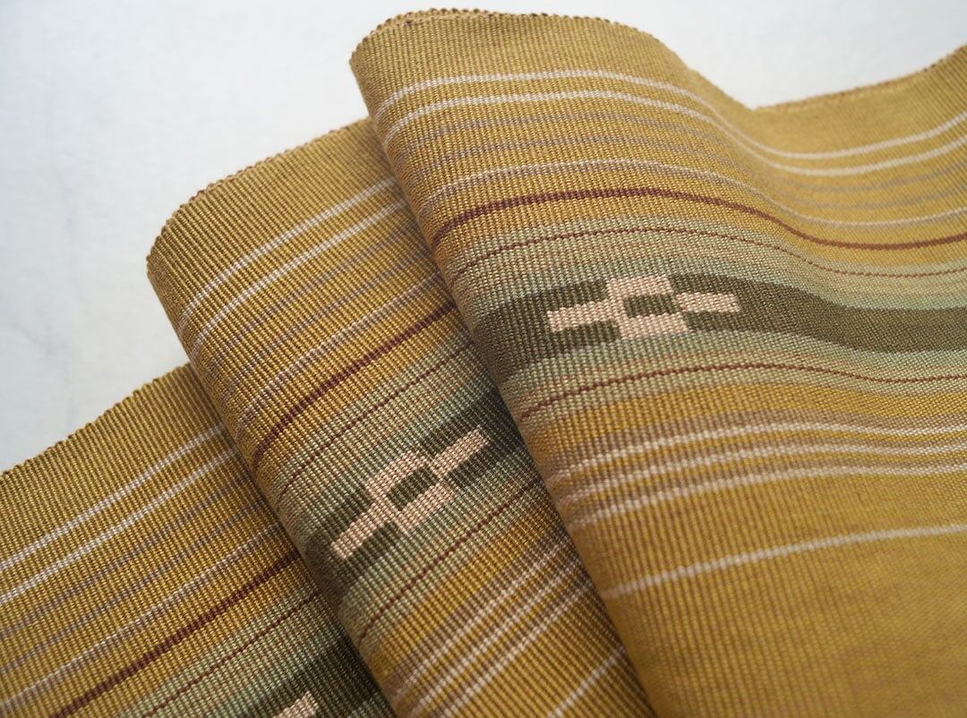 【なごや帯】狐色地 縞文 ミンサー織り 八寸なごや帯