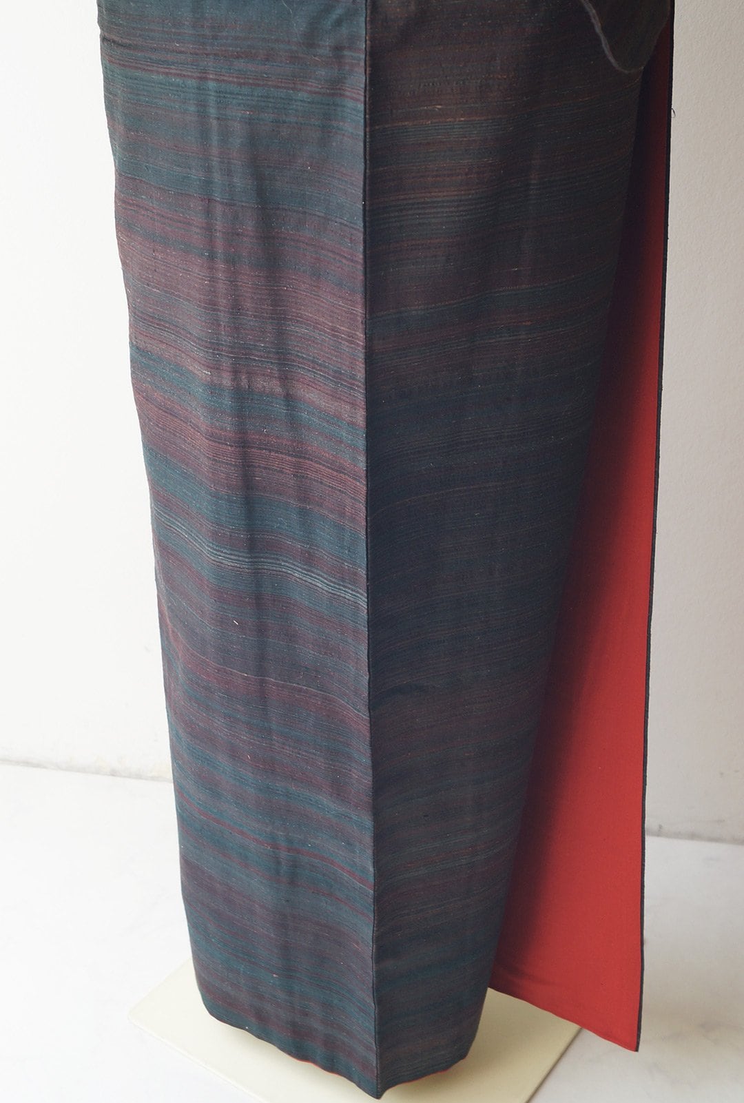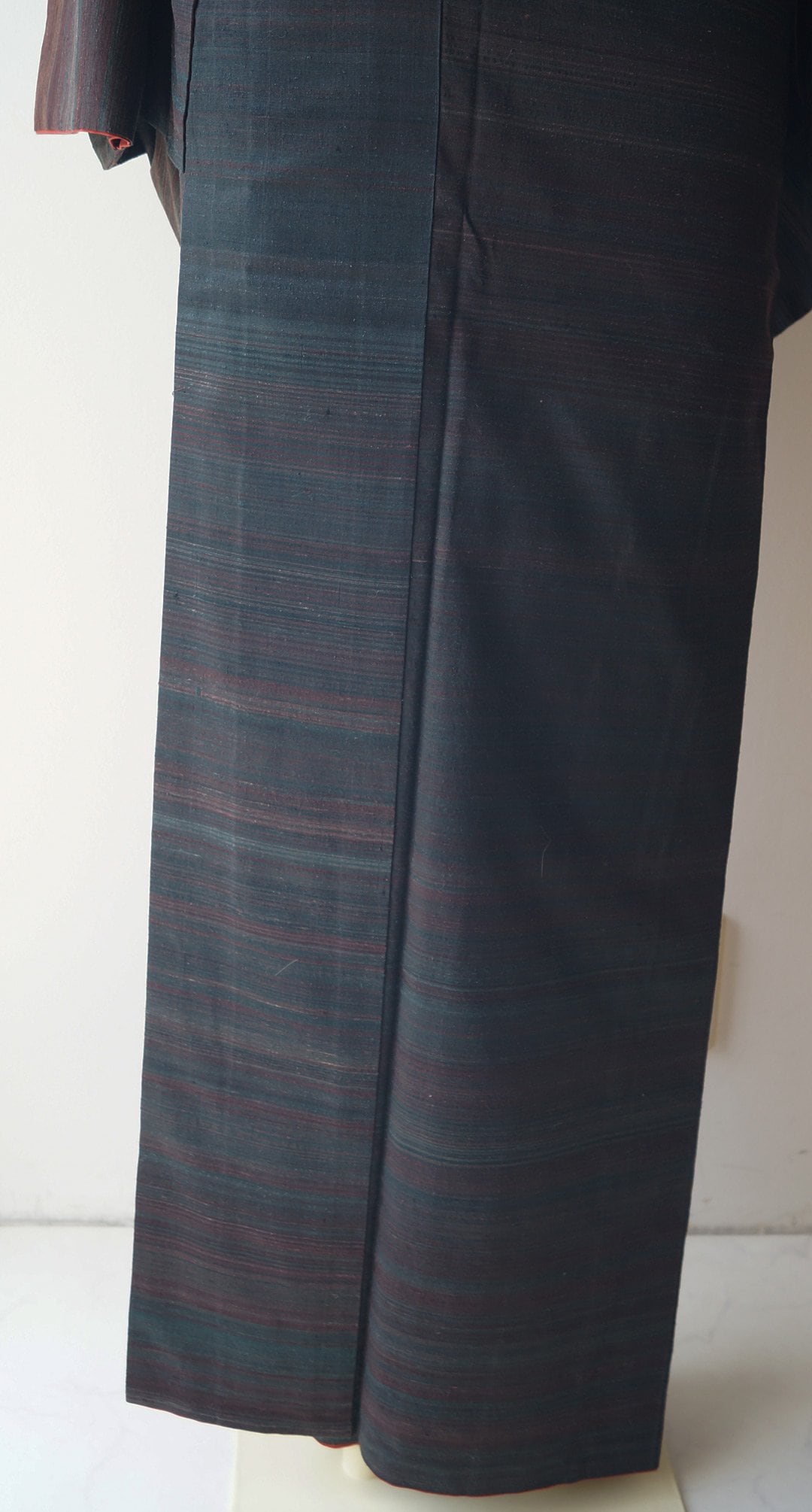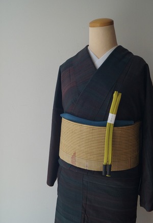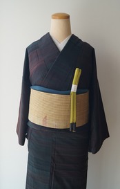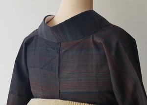 褐返色×葡萄色のランダム段文の紬です。
