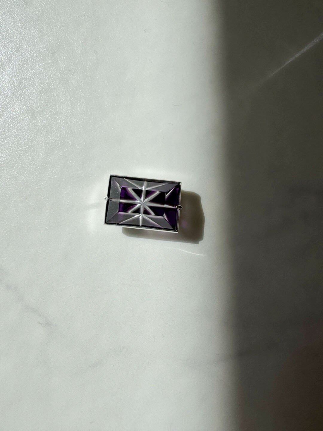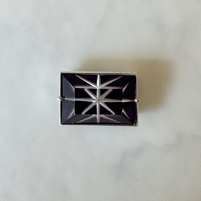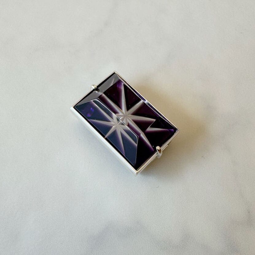 【帯留】小川郁子 江戸切子の帯留 濃紫/四角/星