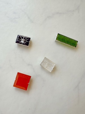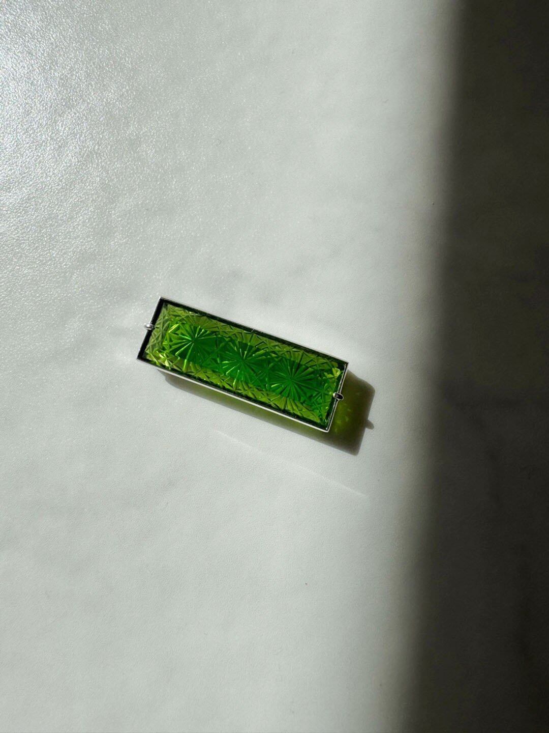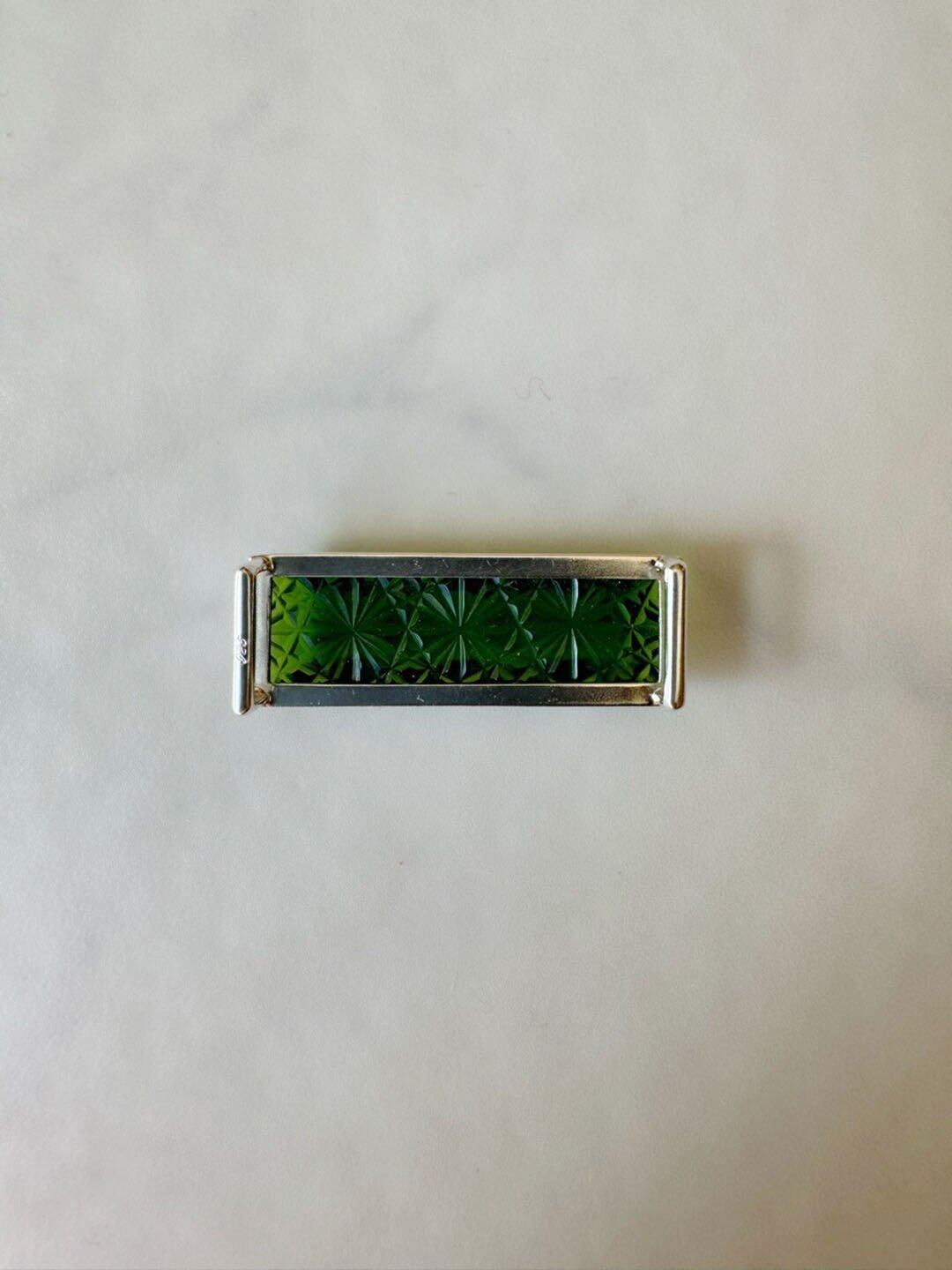 【帯留】小川郁子 江戸切子の帯留 緑/四角/菊つなぎ_1