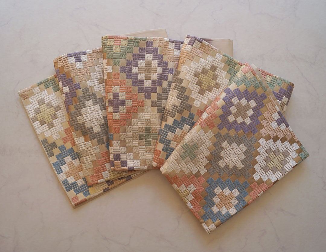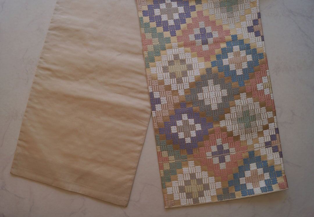 【ふくろ帯】パステル調 モザイク文 唐織りふくろ帯