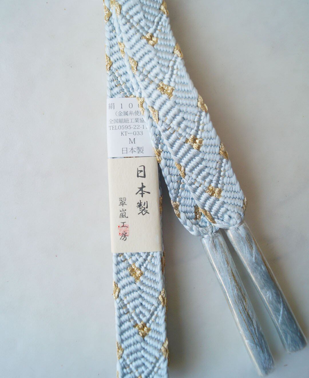 【帯締め】笹浪組 白藍色×金 No.250302①