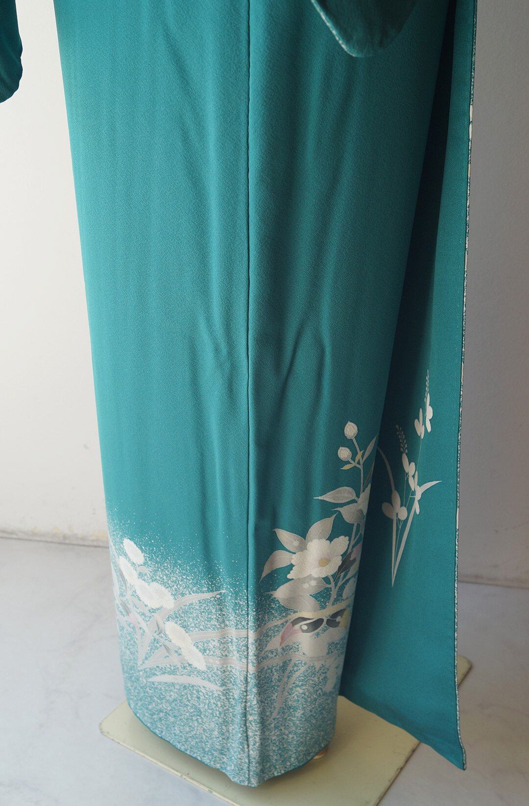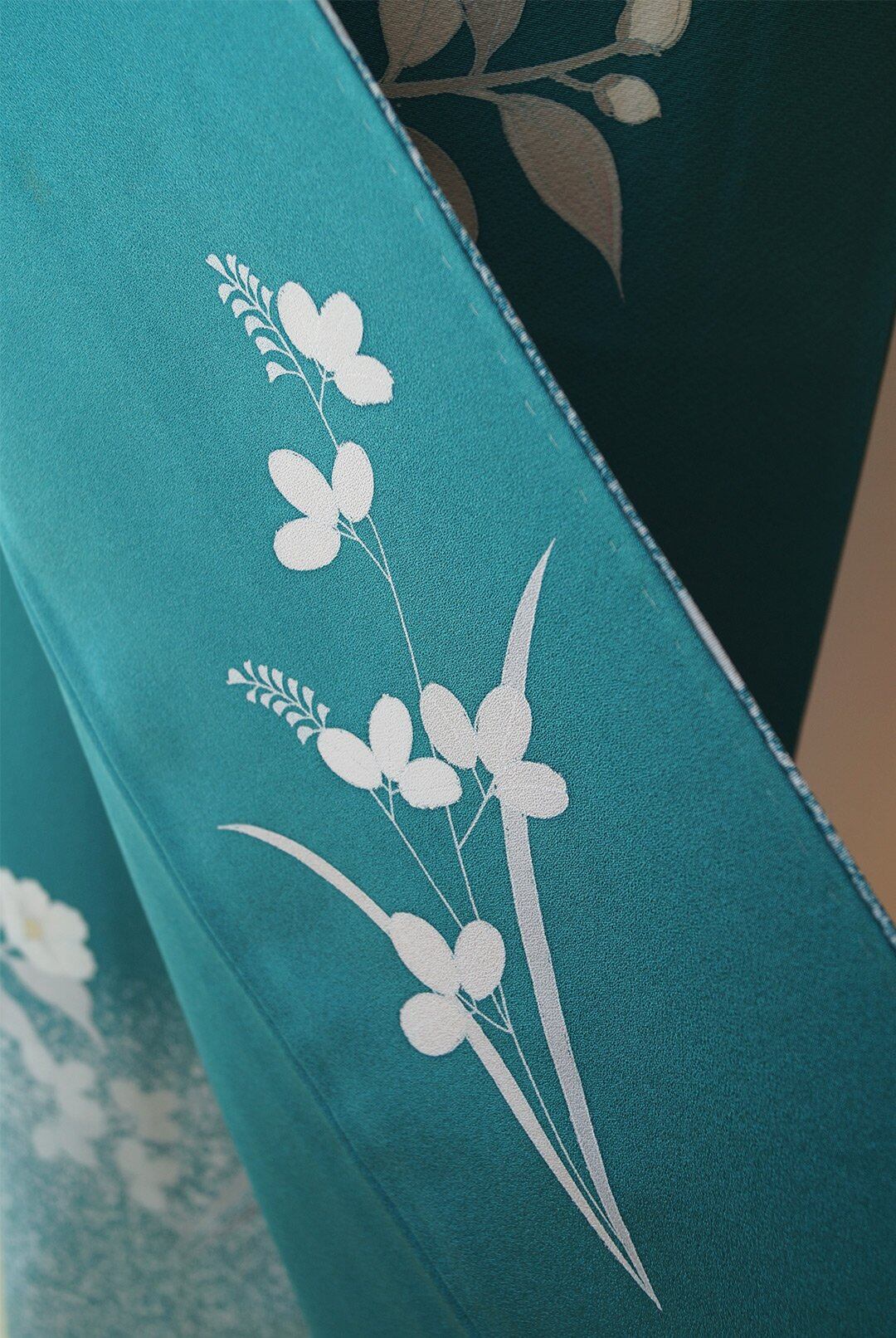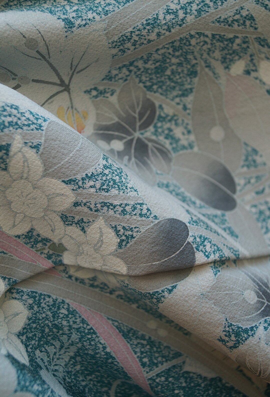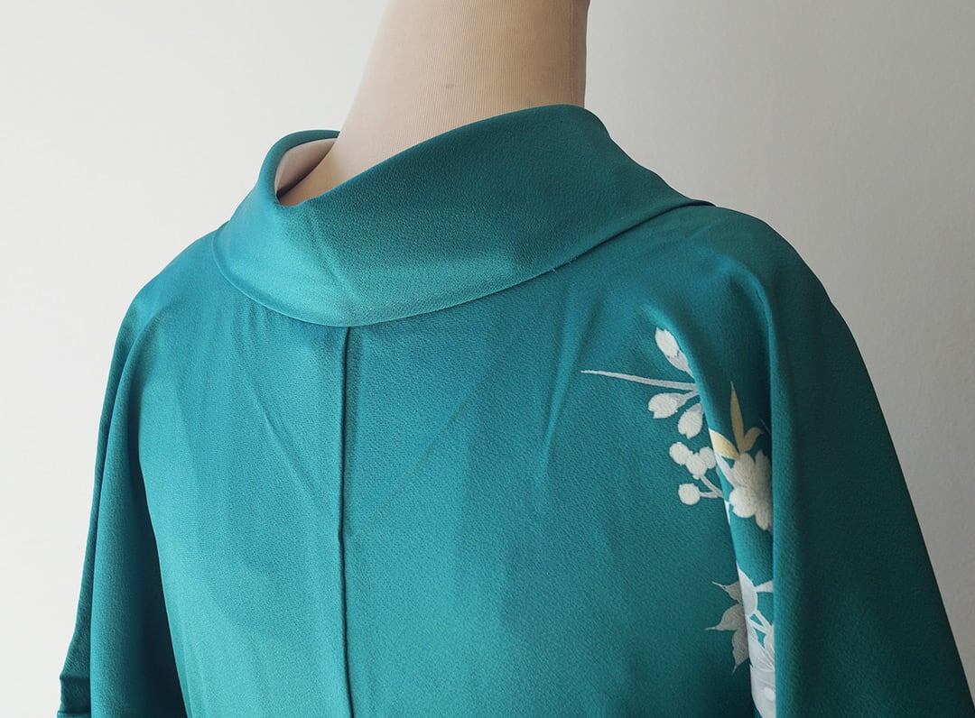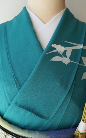 【袷】青緑色 吉祥花々文 訪問着