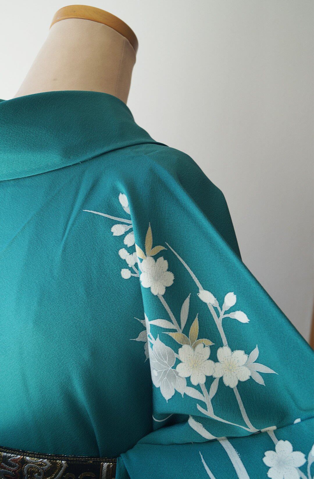 上前には椿に刺繍も施され、立体感の