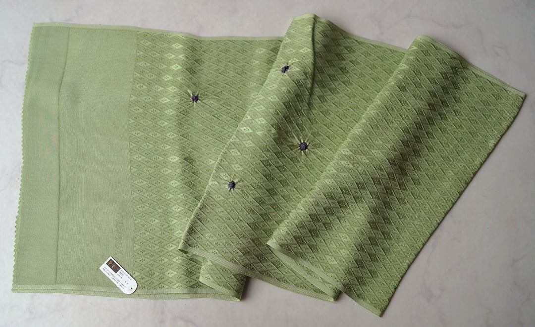【衿秀・帯揚げ】浅緑 菱地紋 丸絞り 帯揚げ №250215⑫