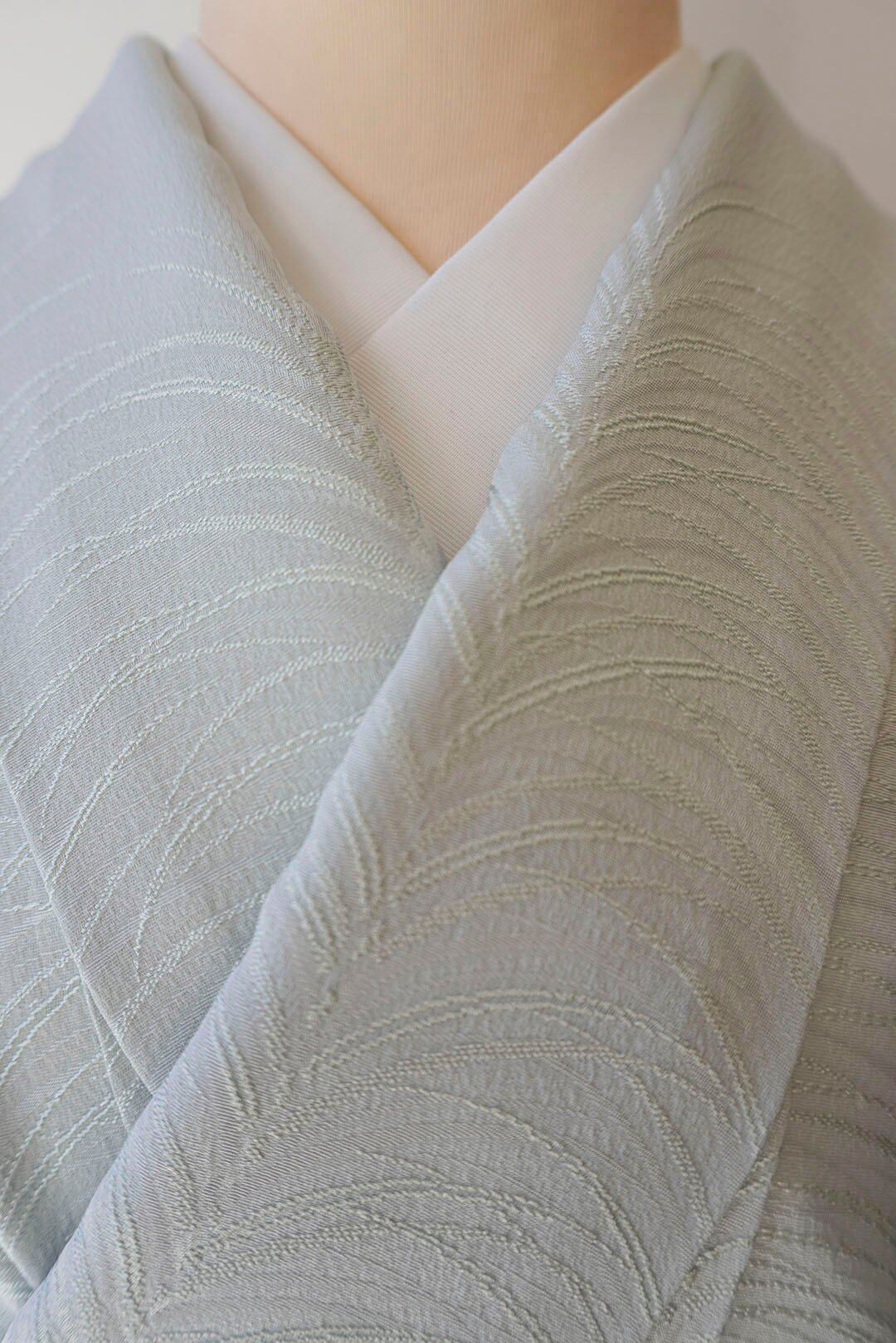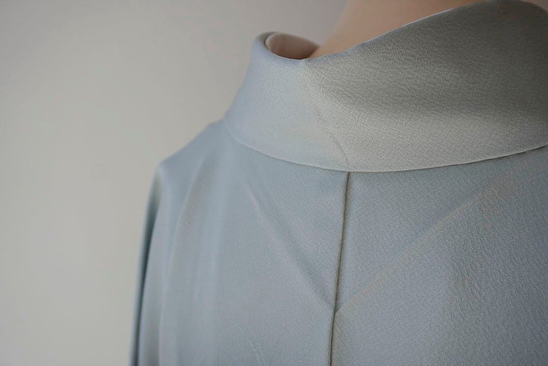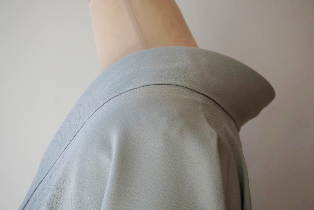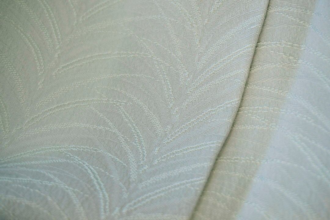 少し青みのある青磁色を淡くしたような綺麗なお色の色無地です。