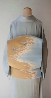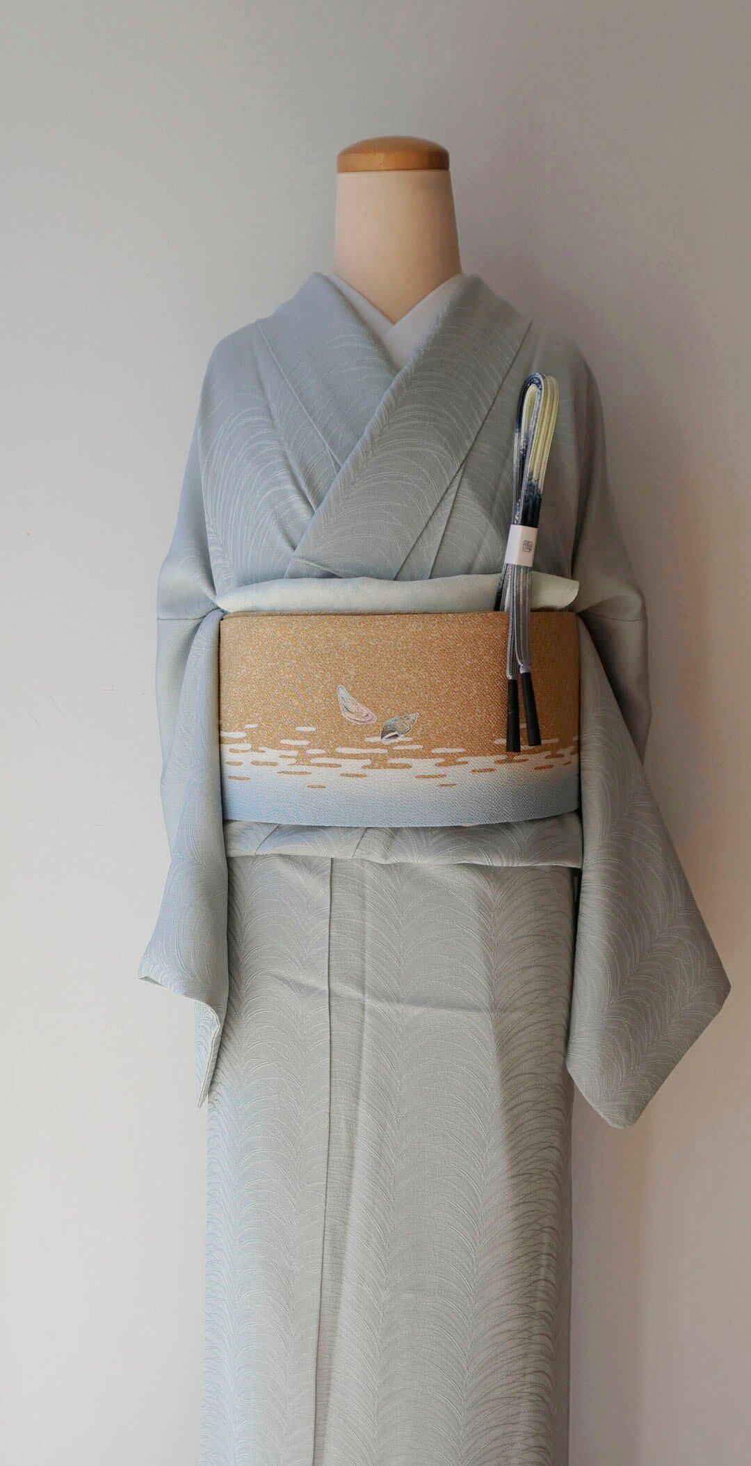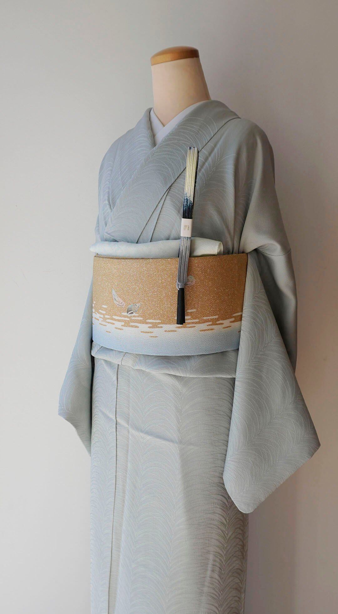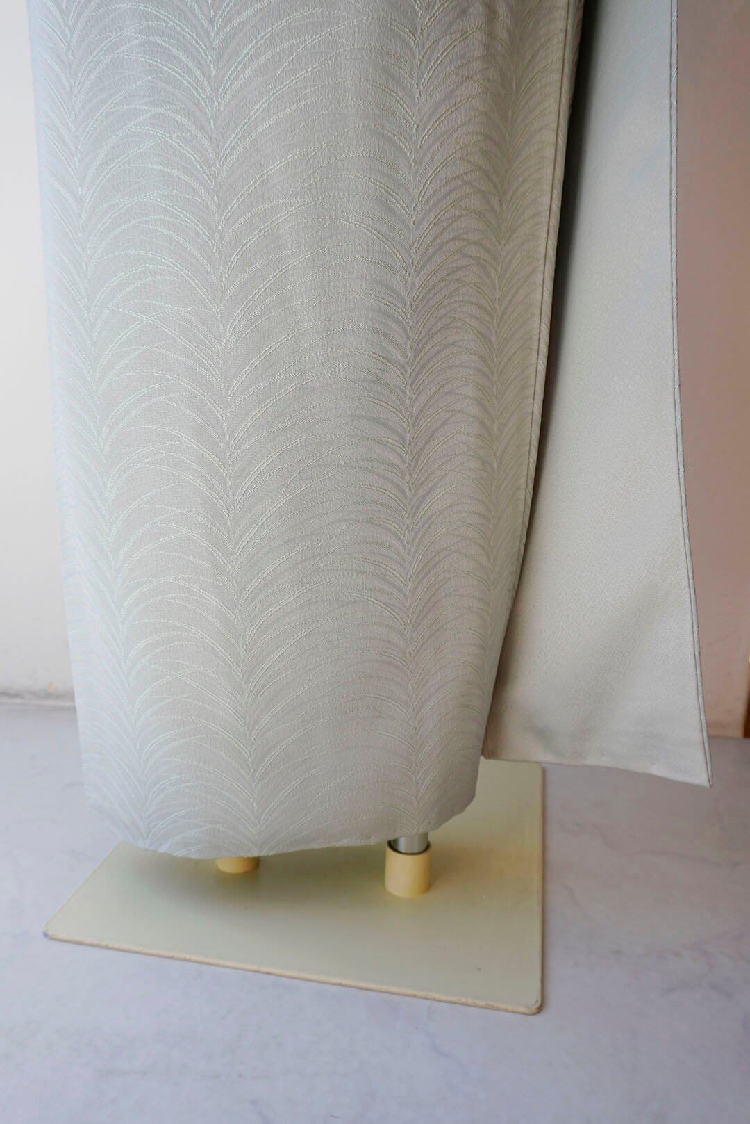少し青みのある青磁色を淡くしたような綺麗なお色の色無地です。