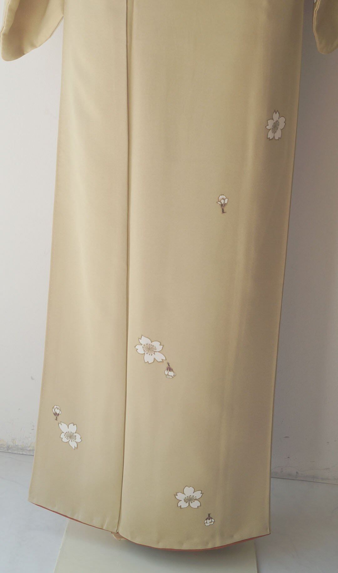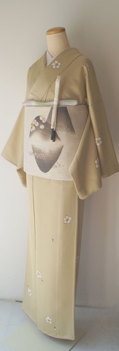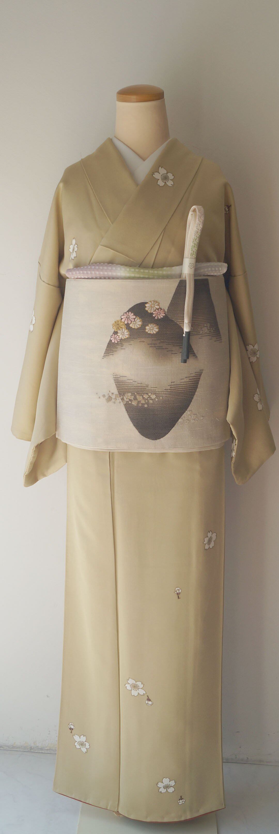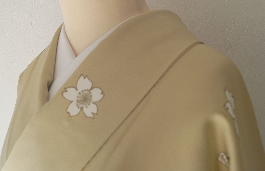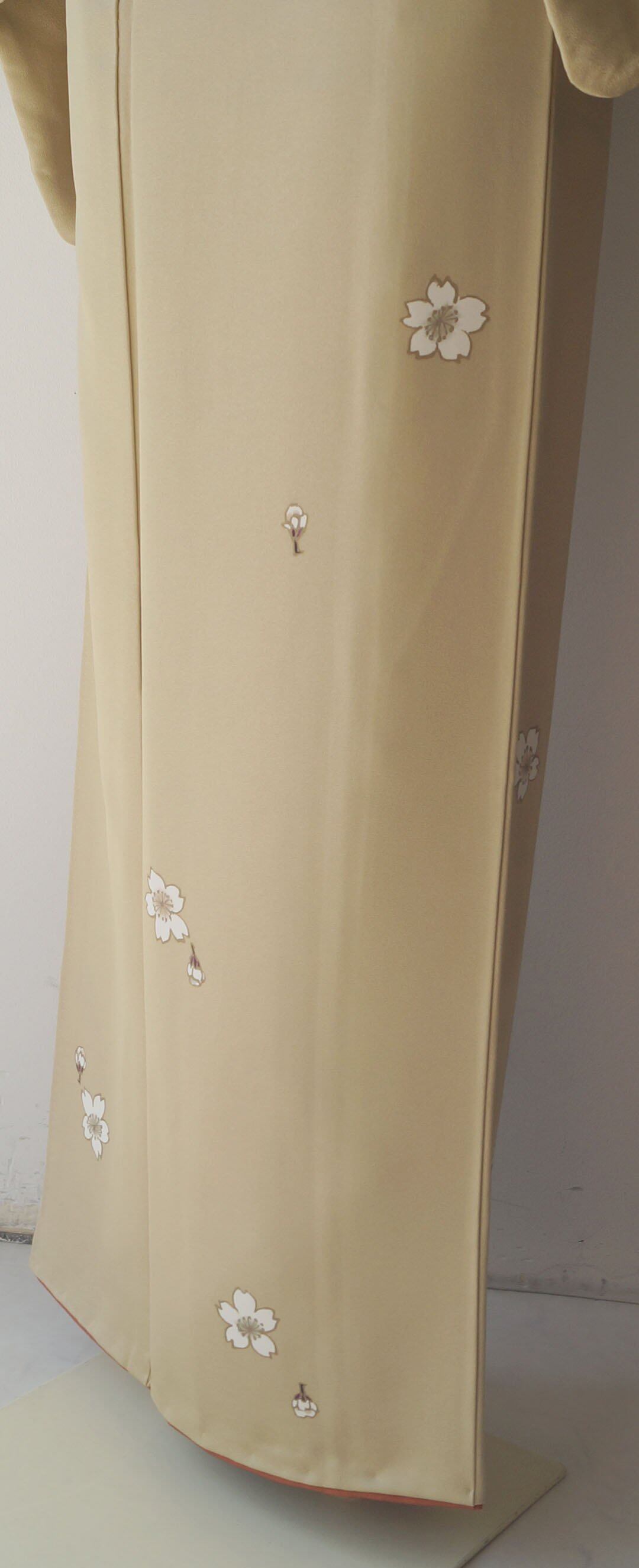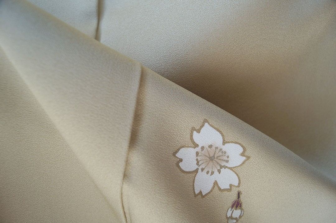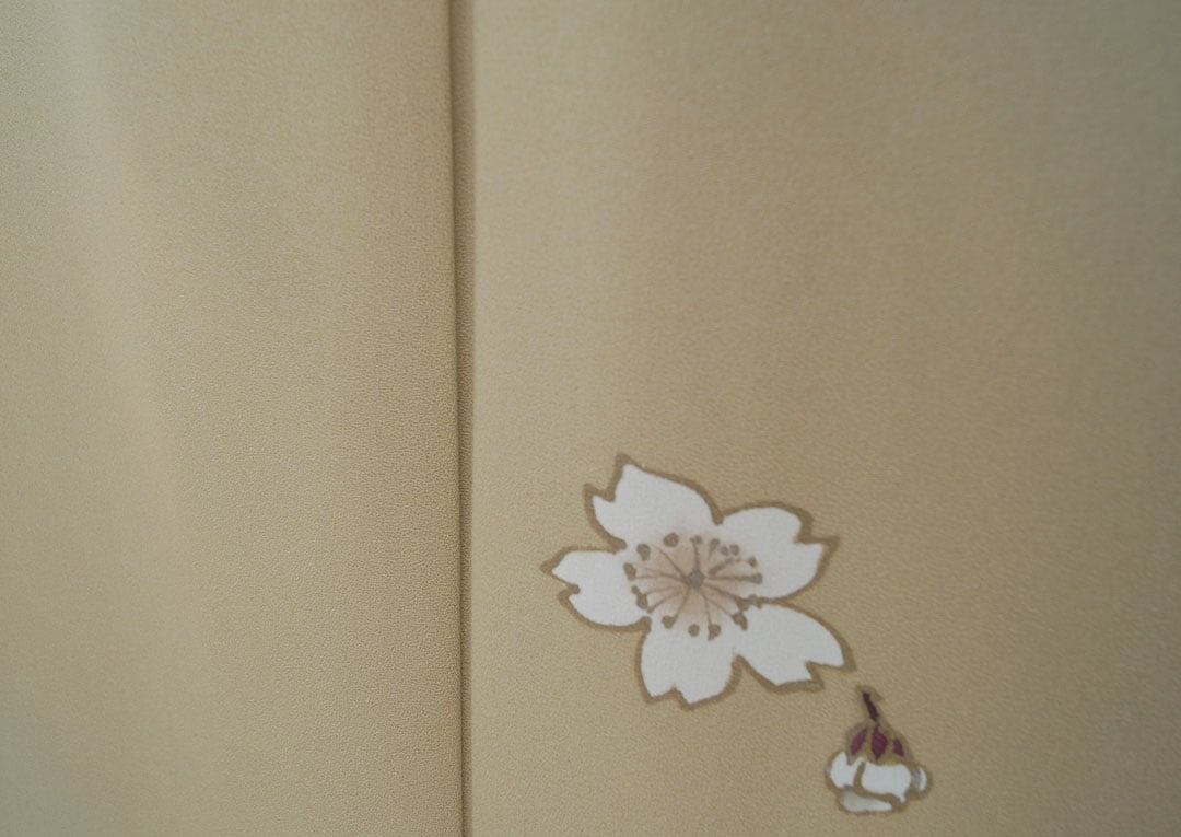 【袷】薄黄橡地 桜文 小紋