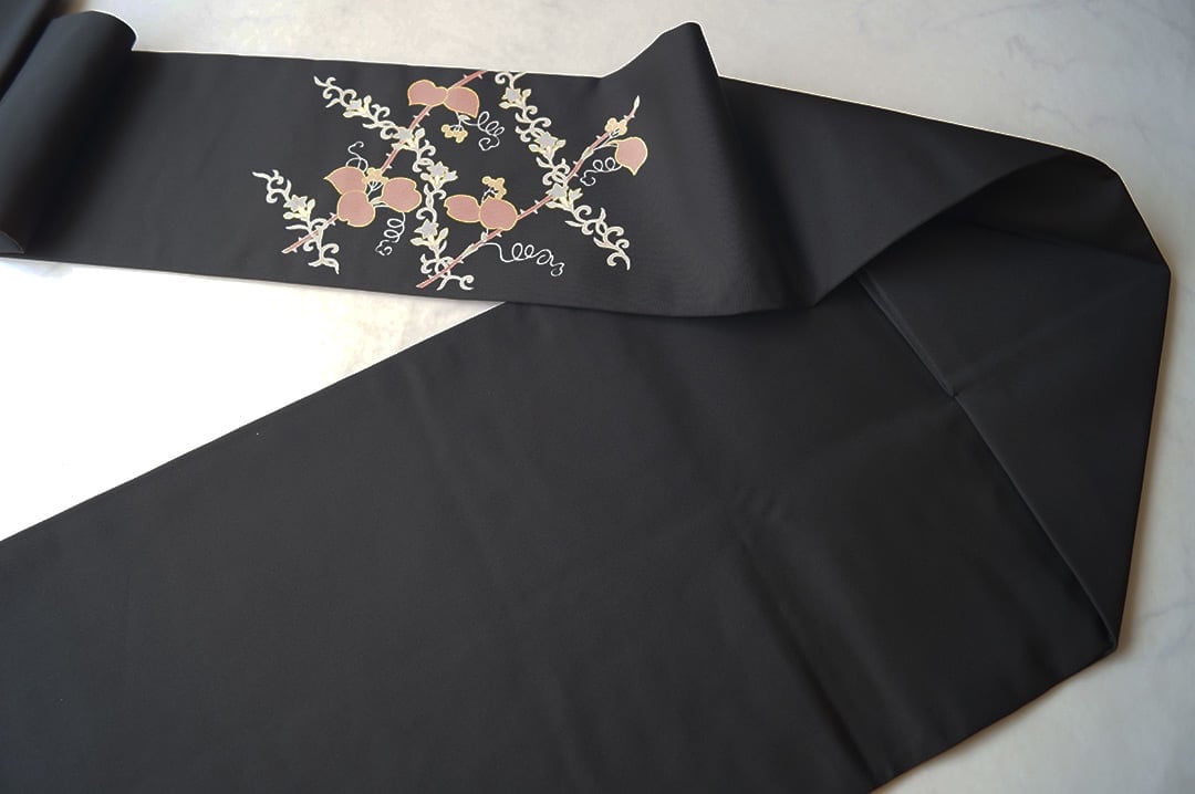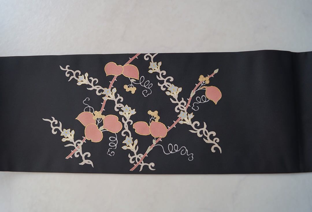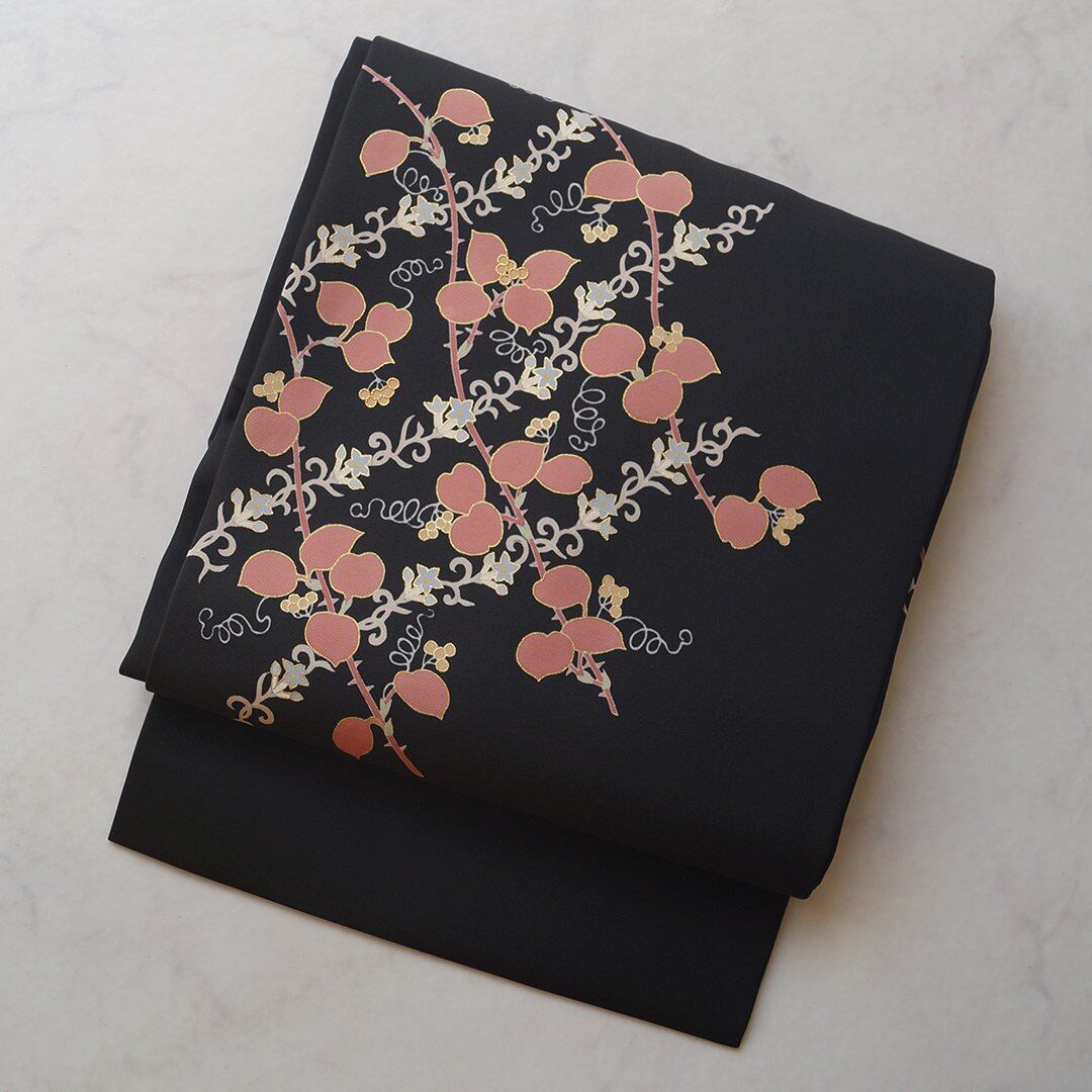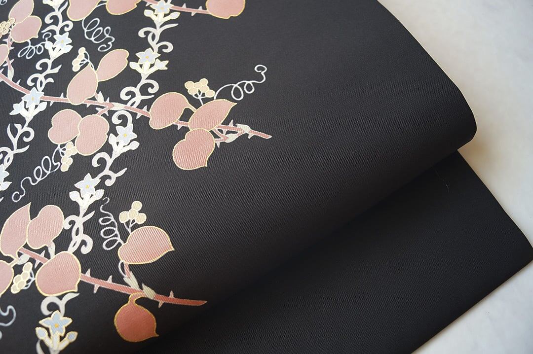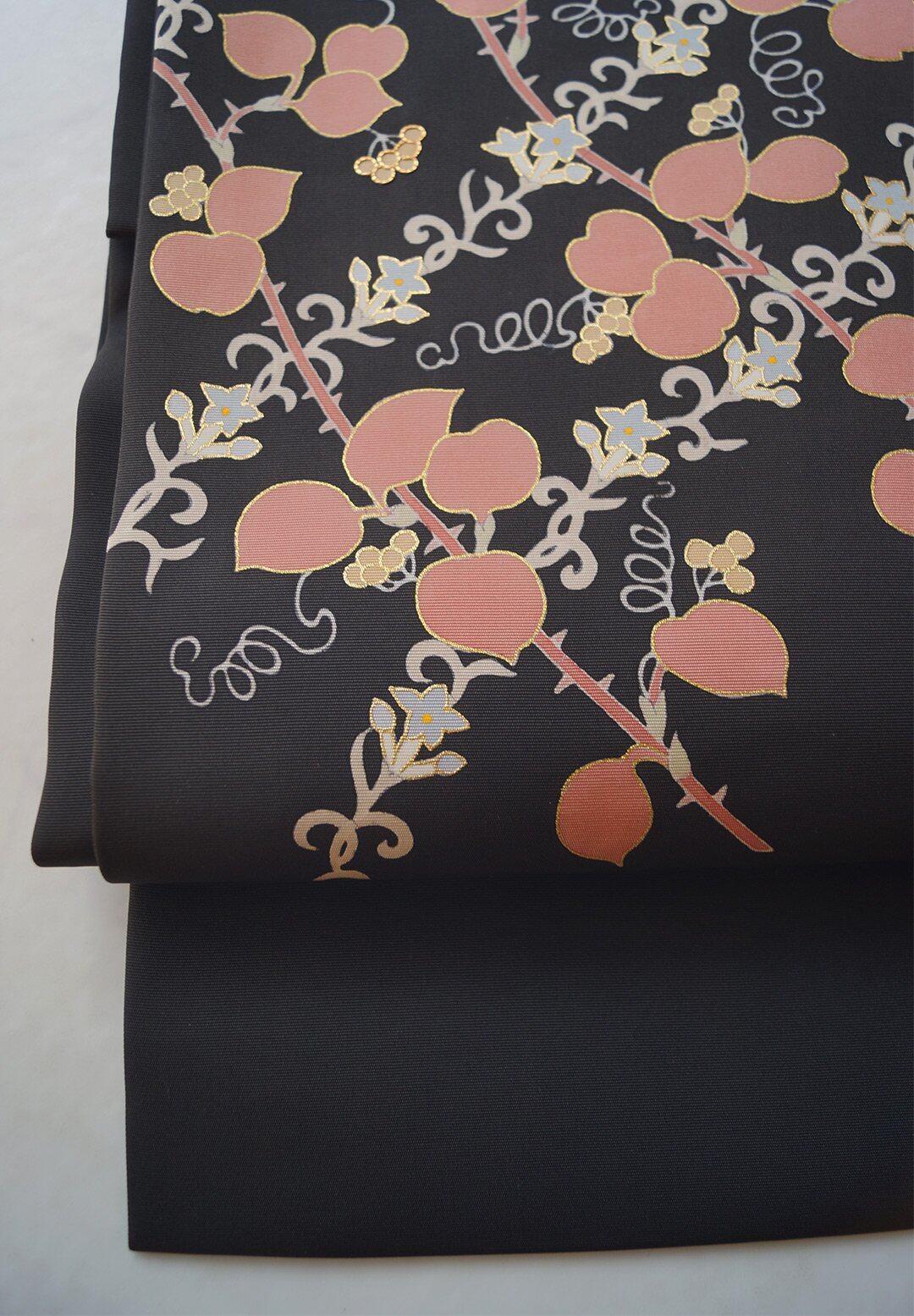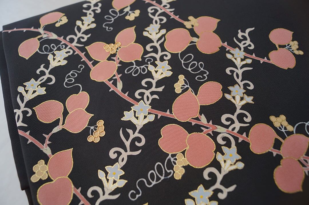 【なごや帯】黒地 葡萄唐草文 塩瀬なごや帯