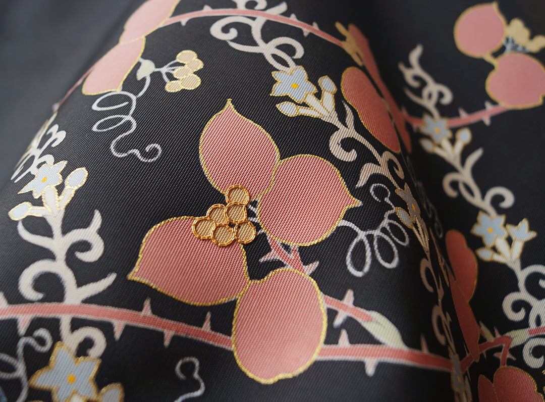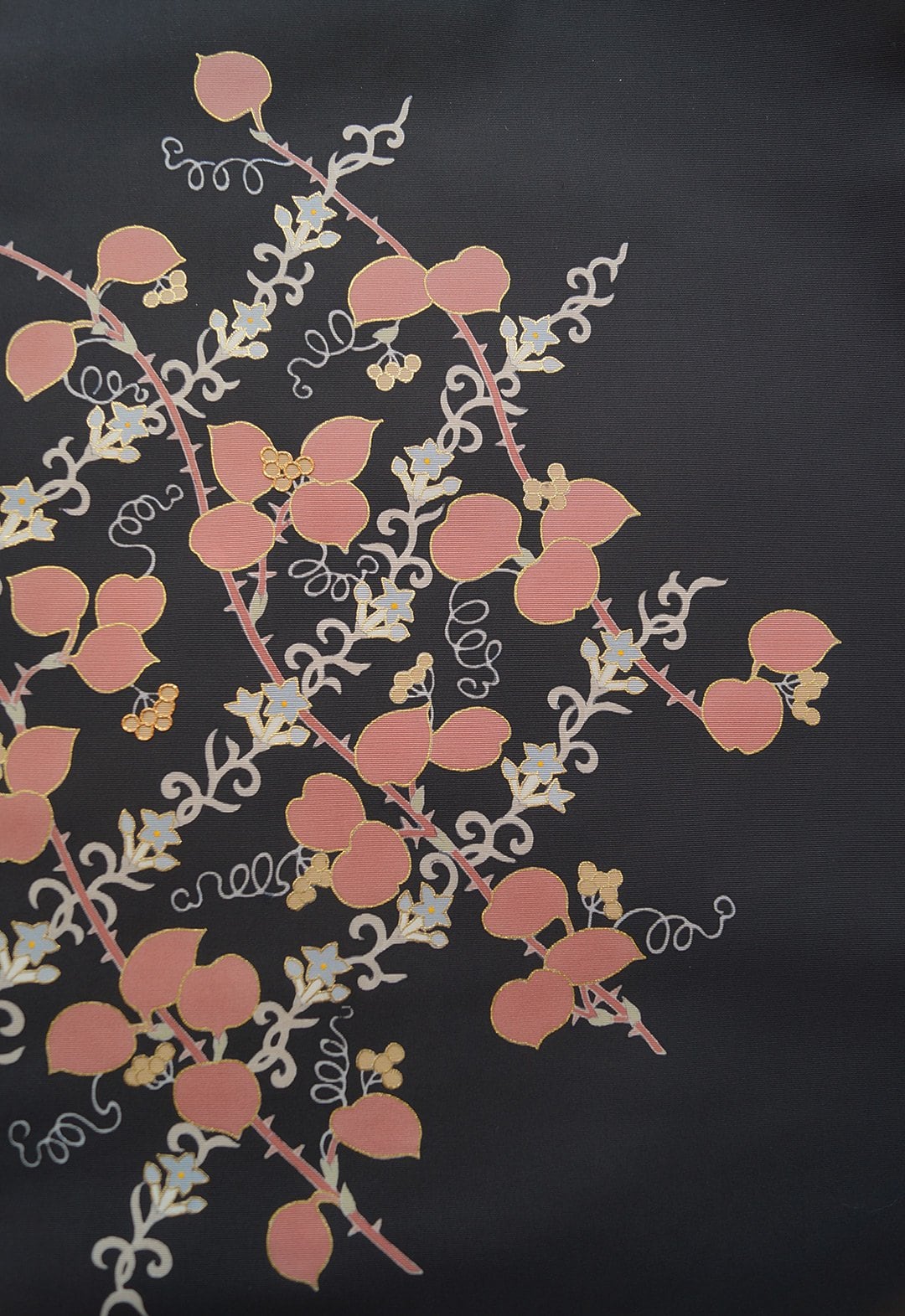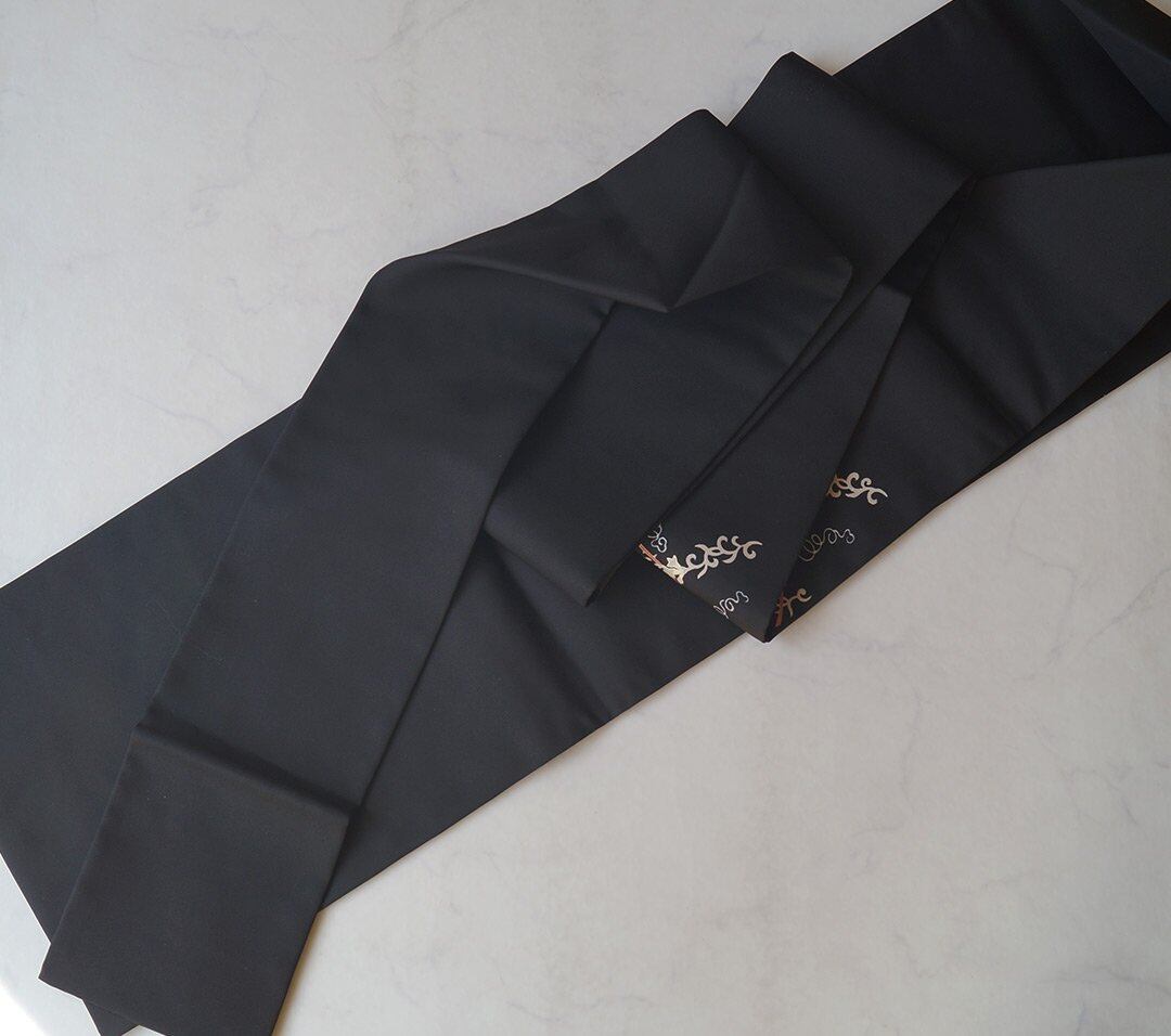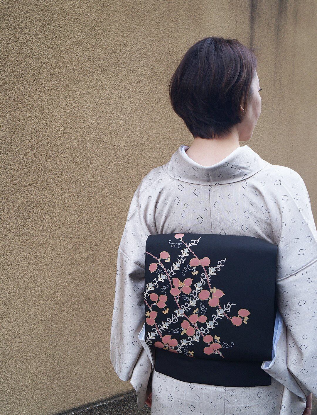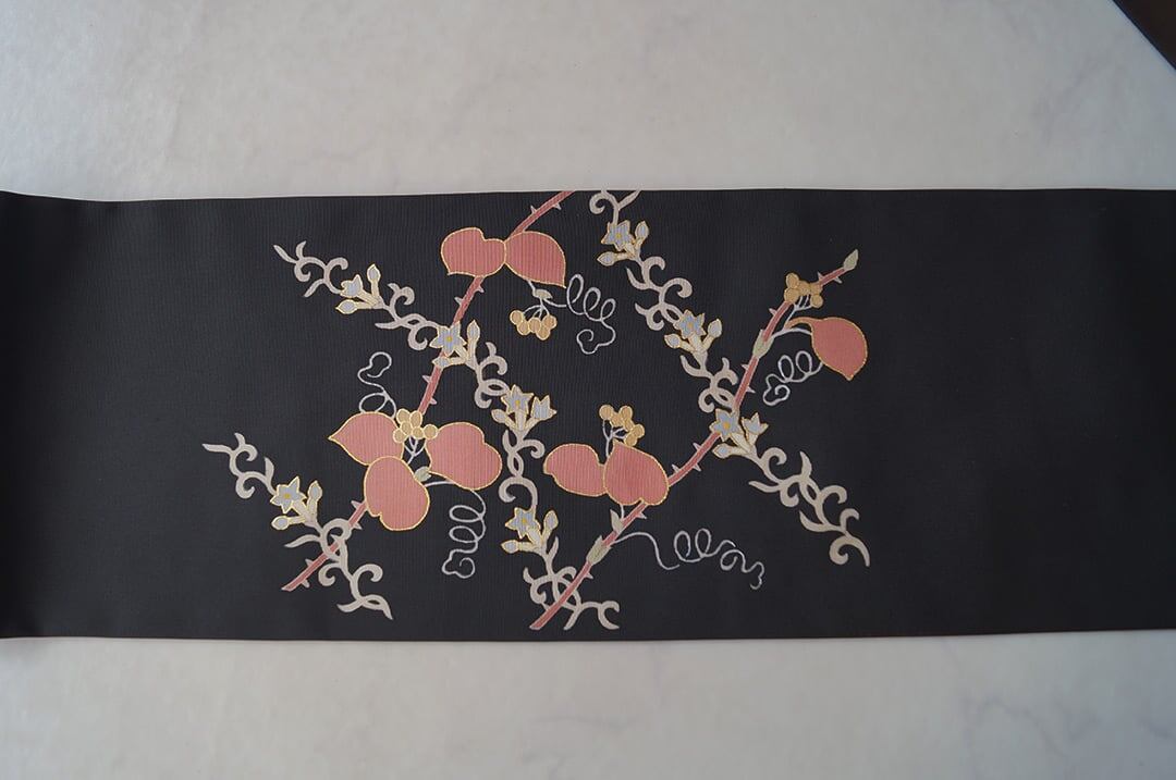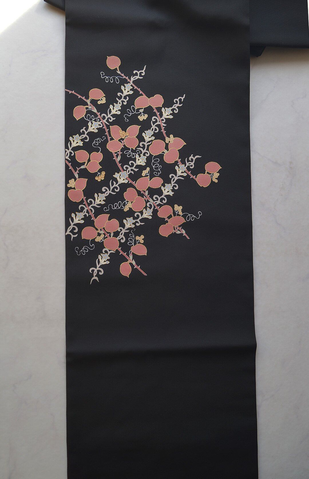 【なごや帯】黒地 葡萄唐草文 塩瀬なごや帯