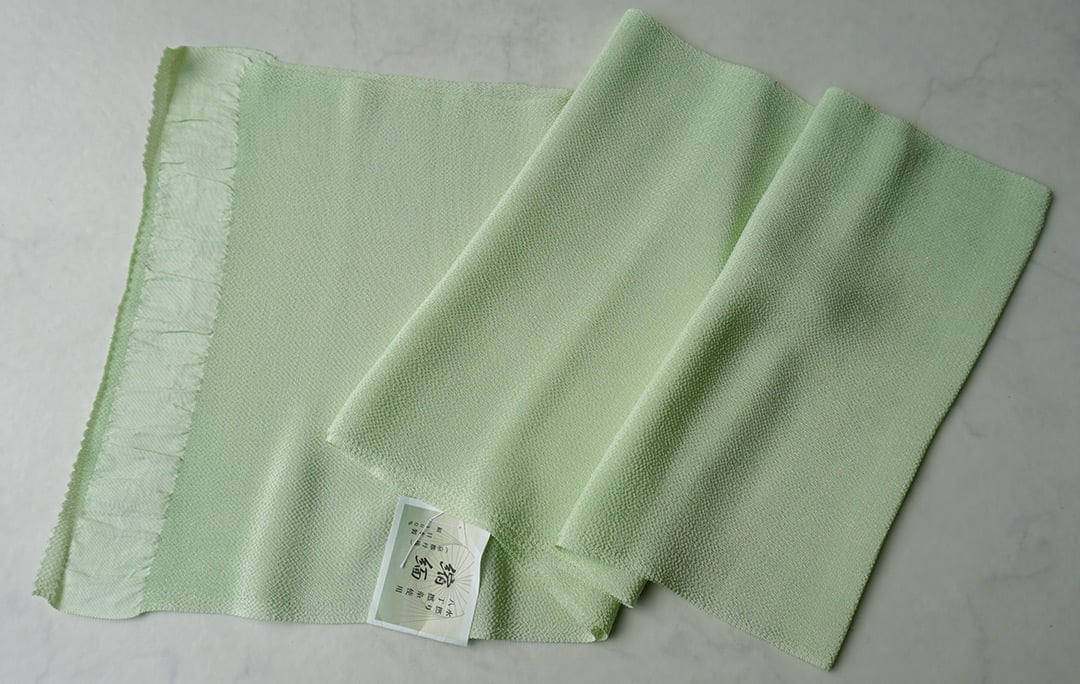 【衿秀・帯揚げ】薄黄緑 ちりめん 帯揚げ No.241226⑨