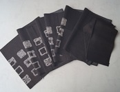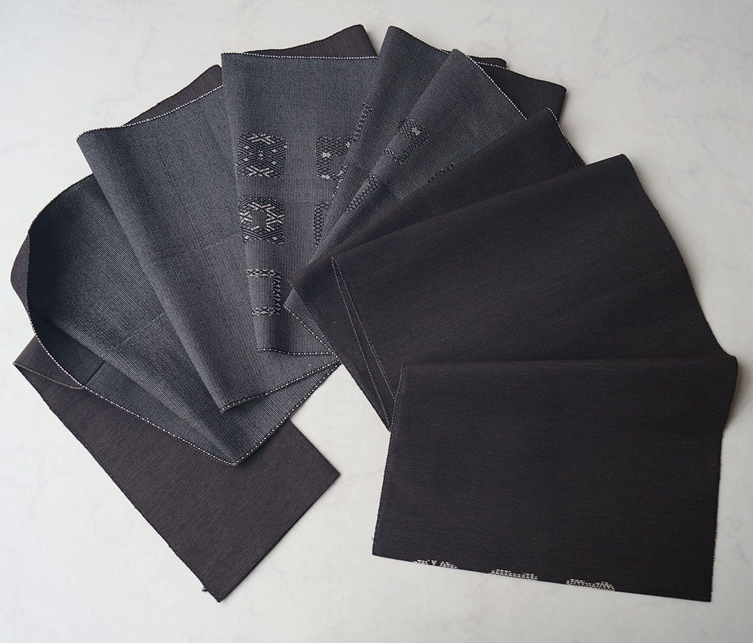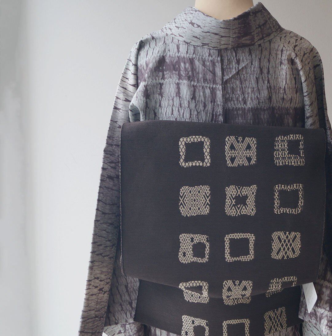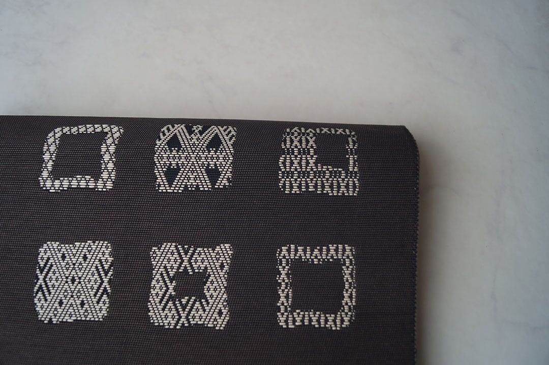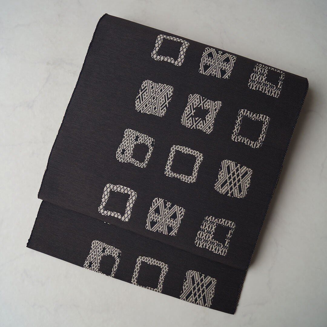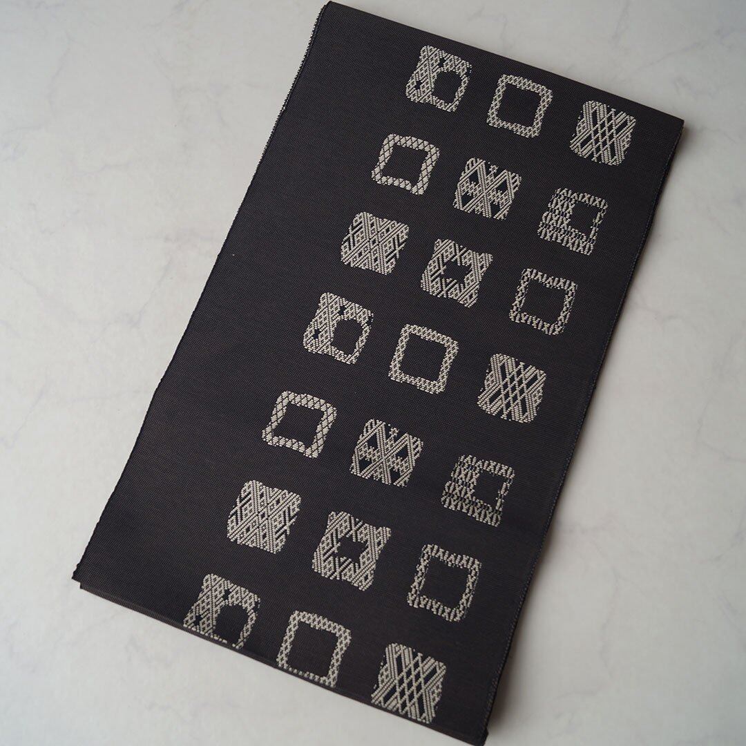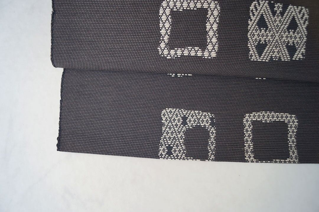 墨黒の生地に四角に幾何学文が