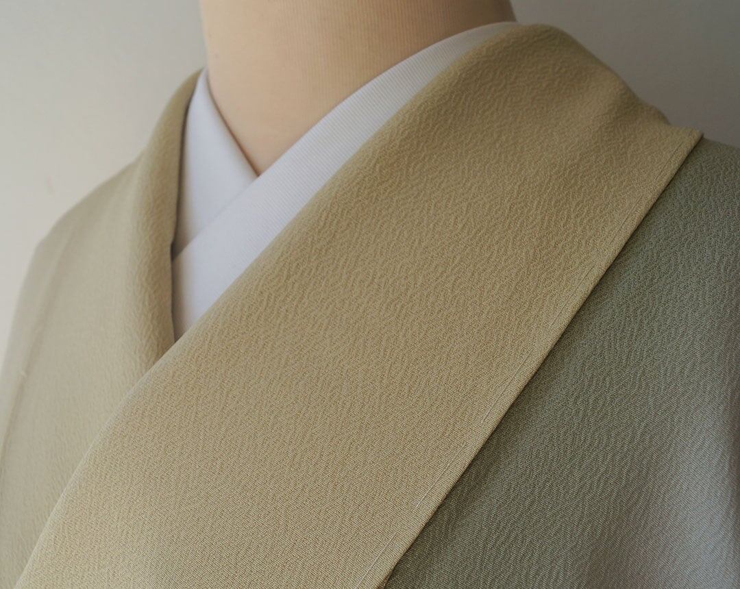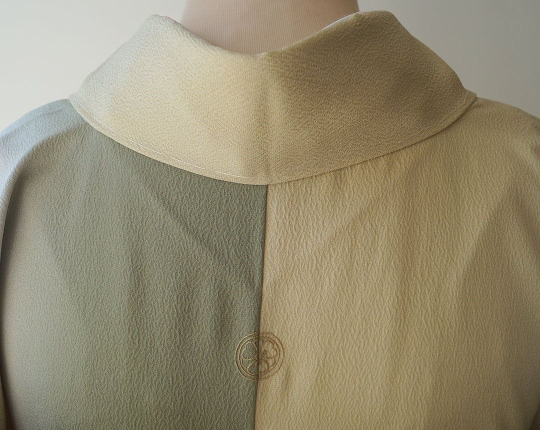【袷】蒸栗色×柳茶色 縦暈し 縮緬地 色無地 縫い一つ紋