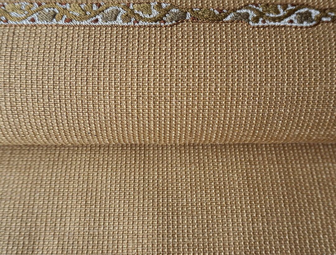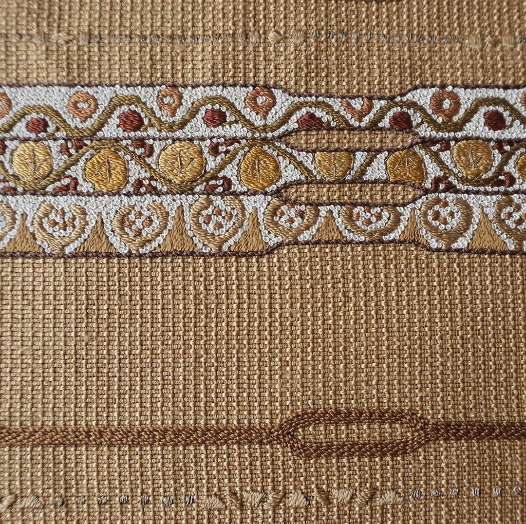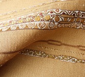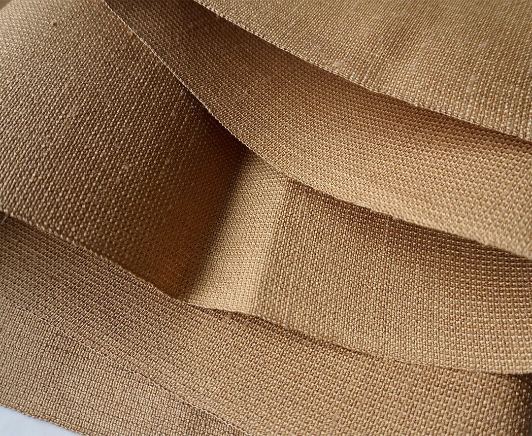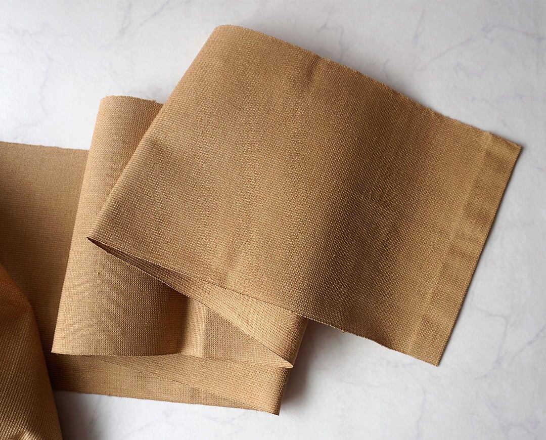【夏なごや帯】黄唐茶地 刺繍横縞文 八寸なごや帯