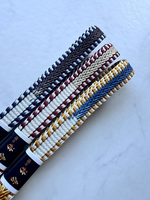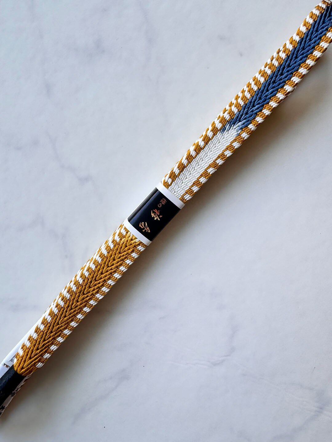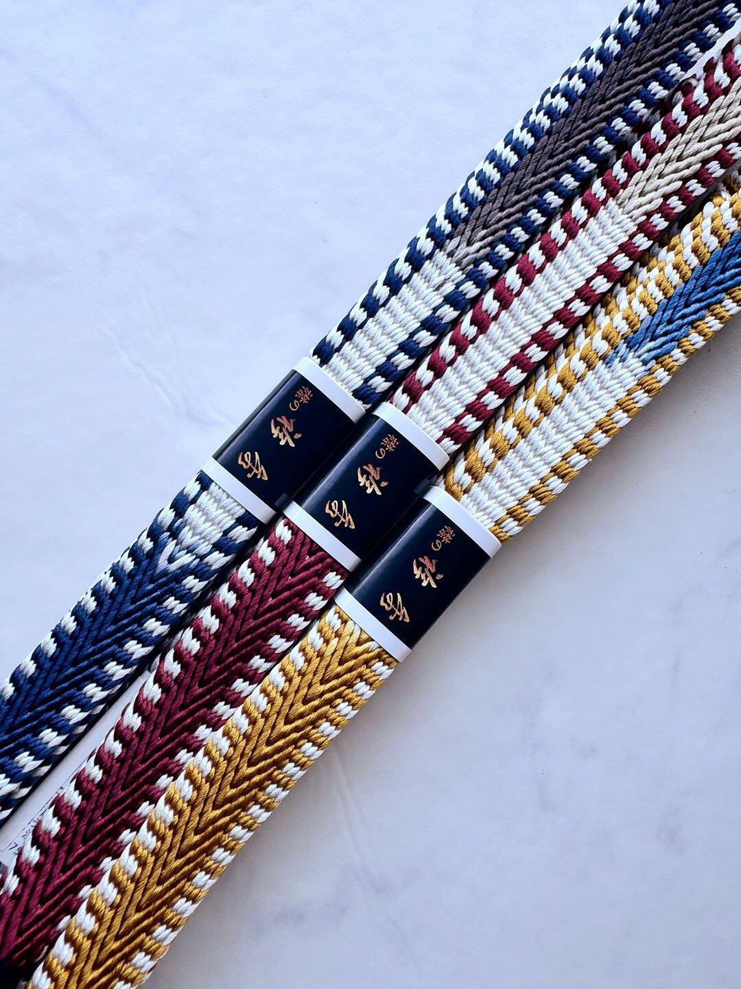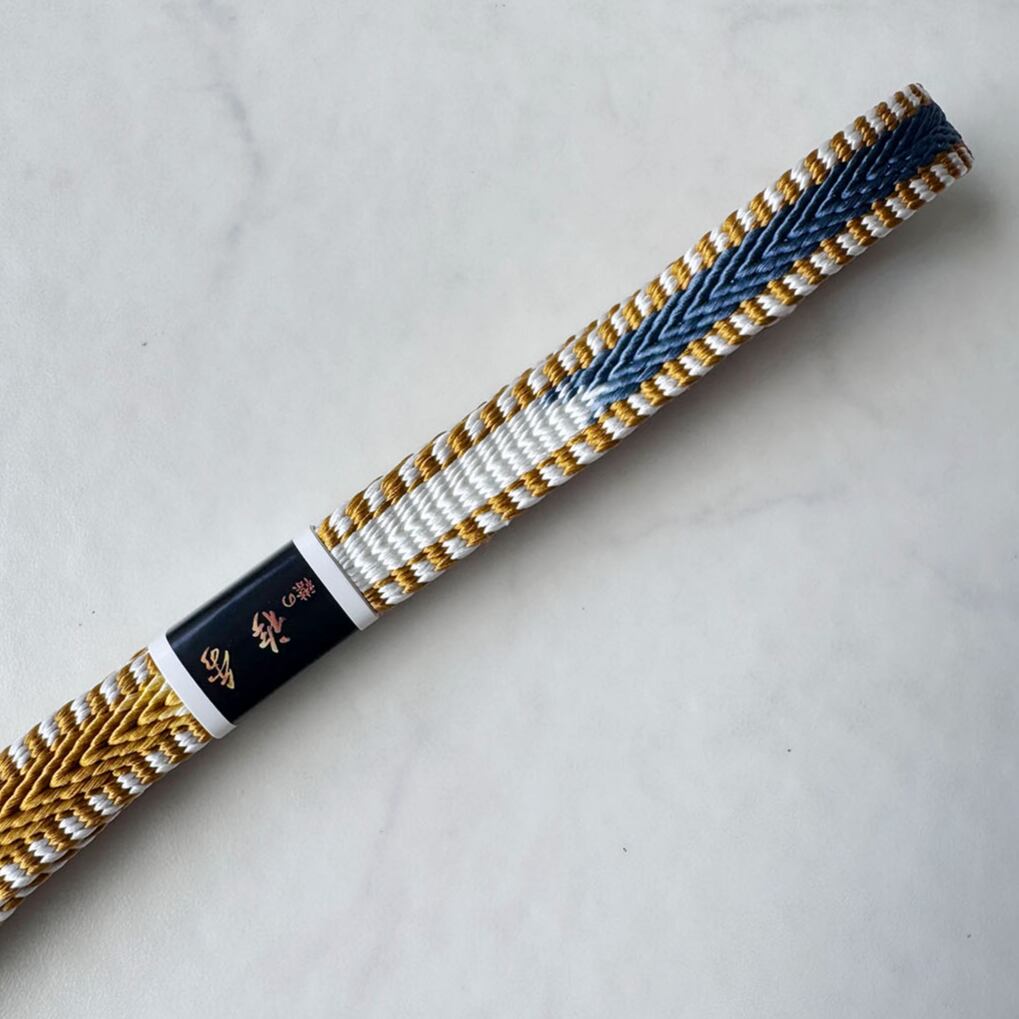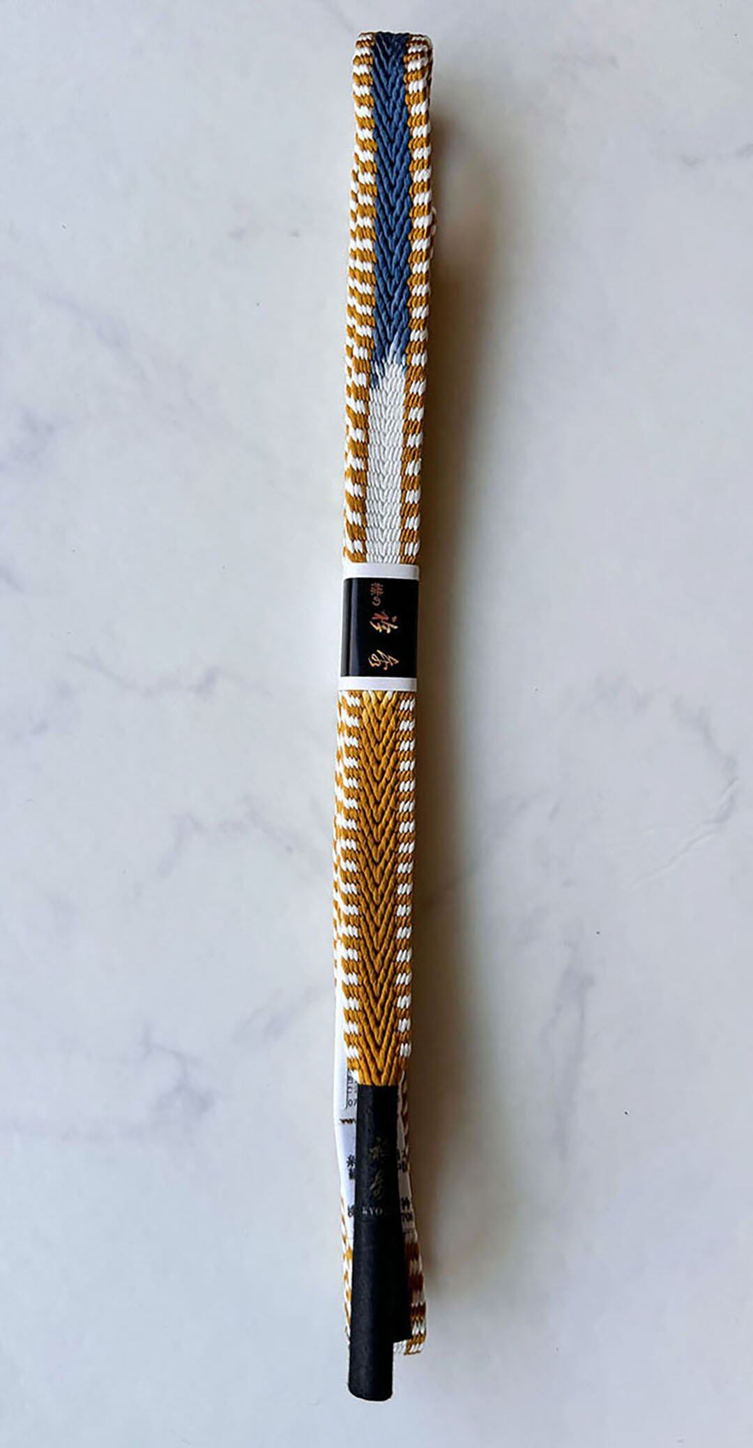 平組みの「綾竹遠州杉綾経巻」の一本で別名「三井寺」とも呼ばれる、特に人気の高い憧れの組み紐です。