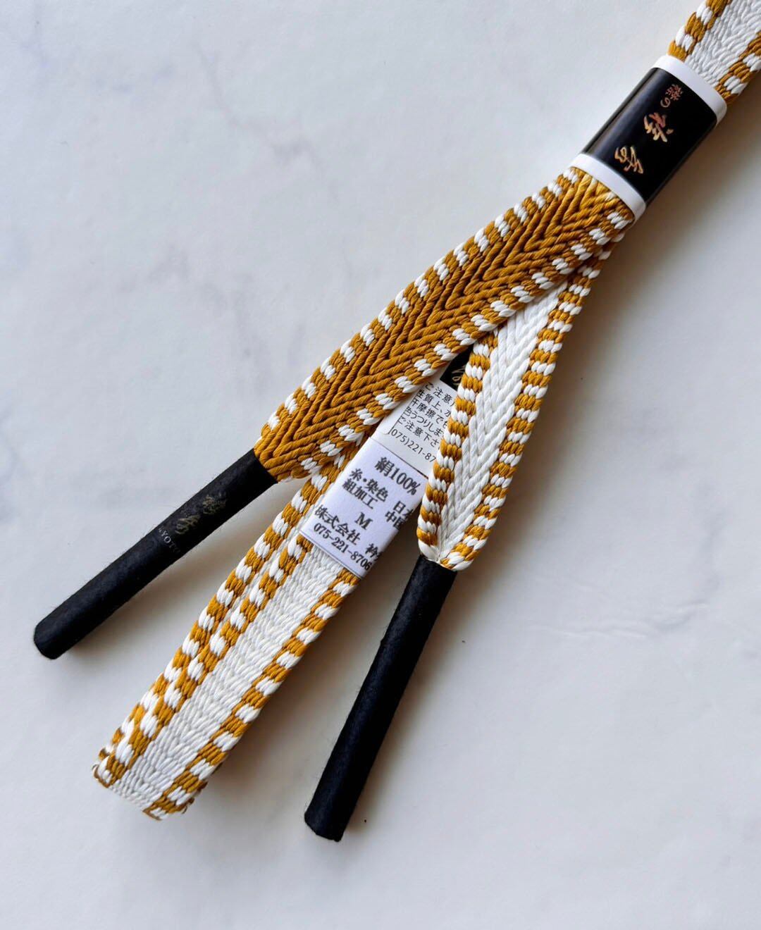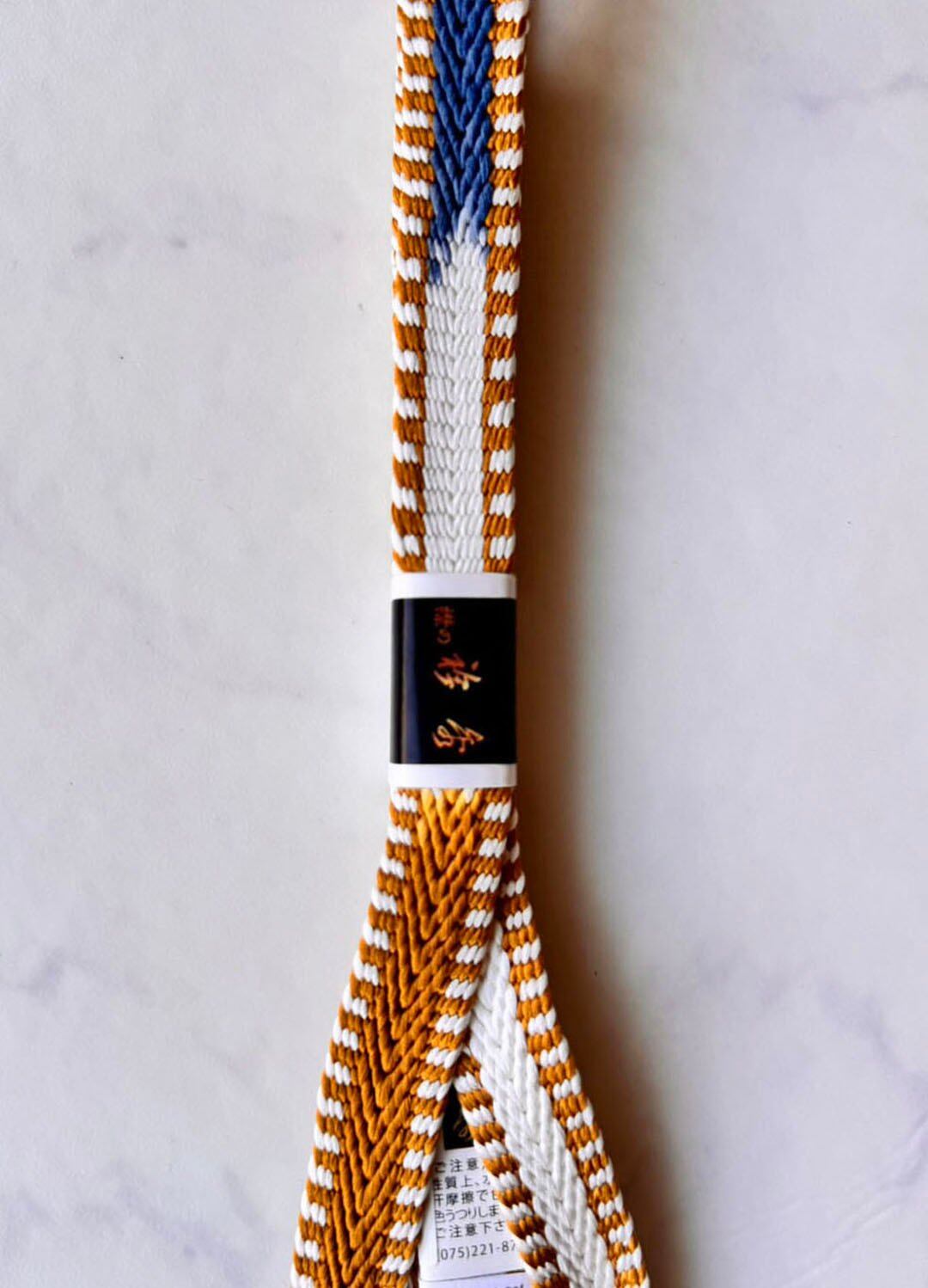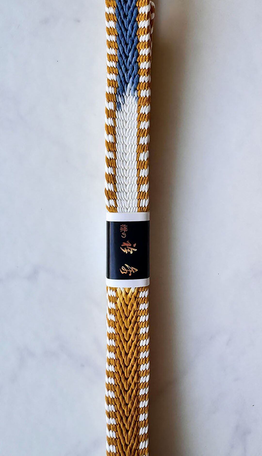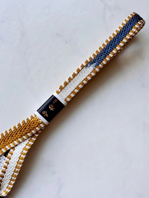 【衿秀・帯締め】白×薄縹×山吹色 三井寺帯締め No.240913①