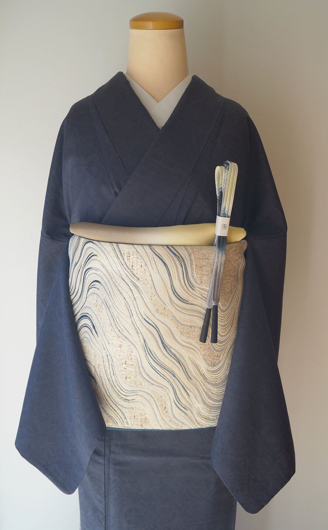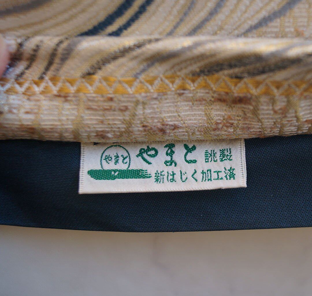 【ふくろ帯】象牙色地 流水文 ぜんまい紬 藍染め ふくろ帯