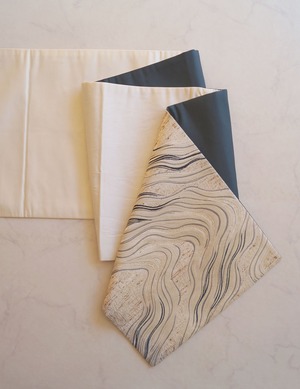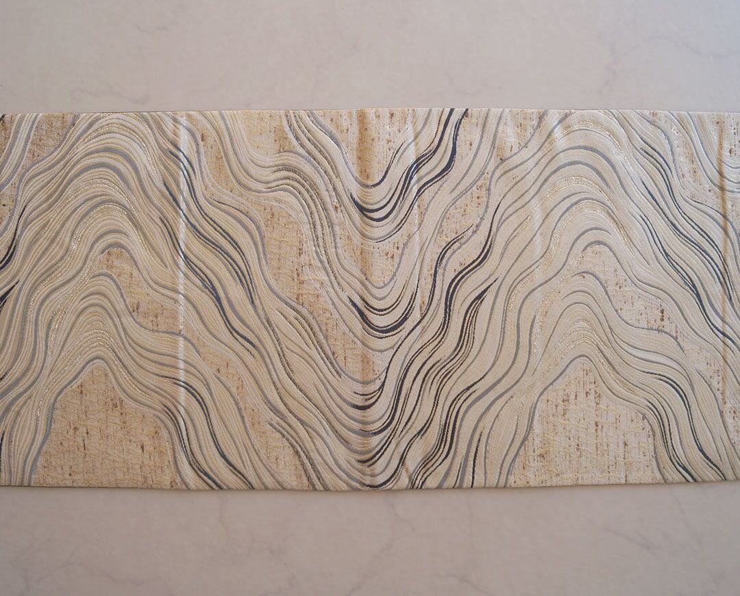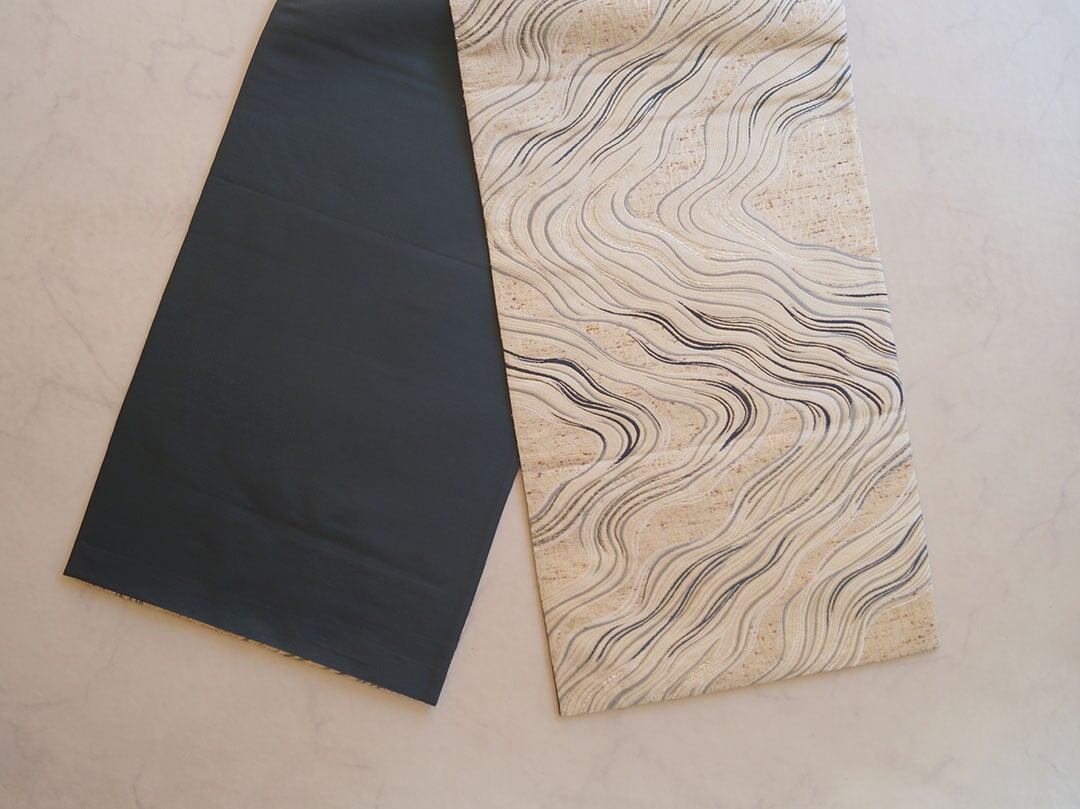 ぜんまい紬地に流水文のふくろ帯です。
